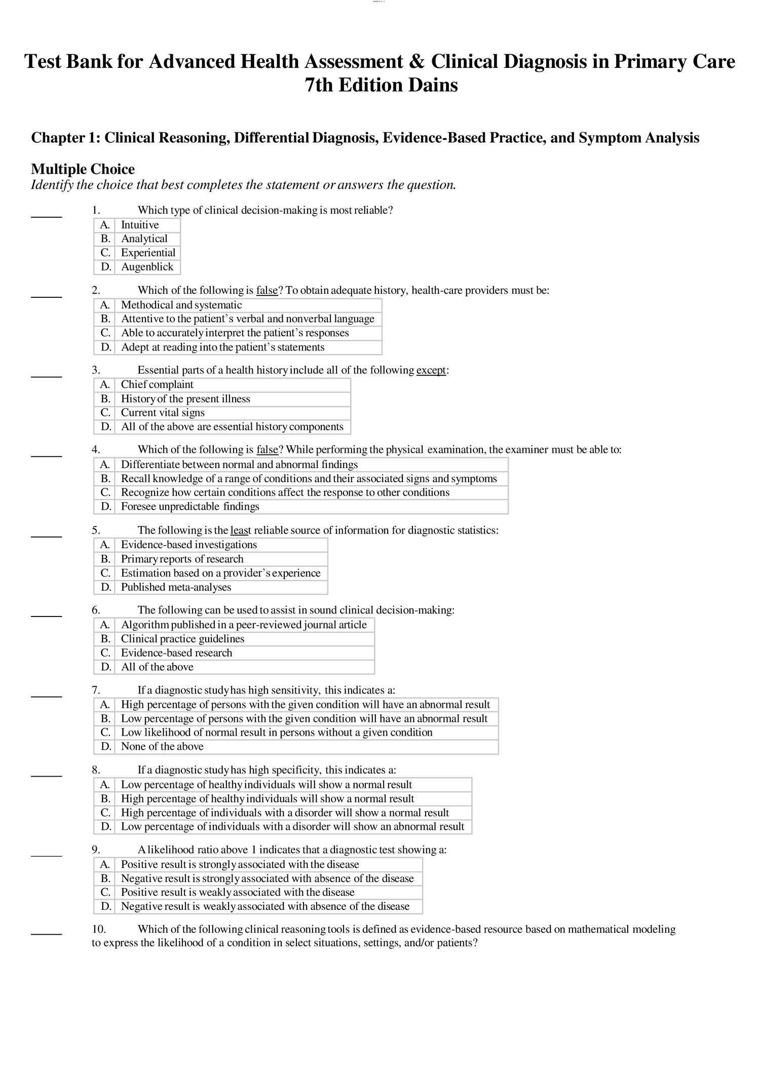 advanced health assessment test bank PDF, clinical diagnosis in primary care 7th edition test bank, Dains Baumann Scheibel test bank download, nurse practitioner clinical reasoning test bank, advanced practice nursing exam prep PDF, primary care health assessment test questions and answers, advanced diagnostic reasoning test bank PDF, NP board prep test bank instant download, clinical practice test bank PDF, advanced health assessment nursing test bank