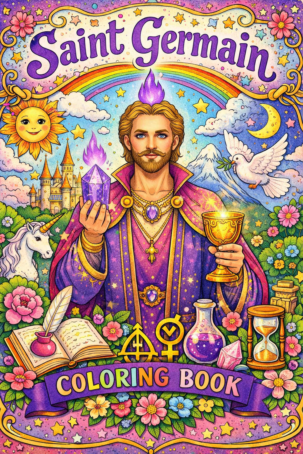 Saint Germain, 83 designs, coloring ebook, digital printable product, instantly download