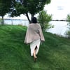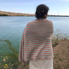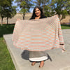 Khamseen is the Arabic word for 50, and is also the name for dry, hot, sand-filled windstorms that blow in Egypt over a 50 day period in the spring. This large, semi-circular shawl uses the number 50 in more than one way. There are 50 stripes and even the border has 50 repeats of the pattern. You will knit this for far fewer than 50 days, and be able to wear it for far more than that amount of time.