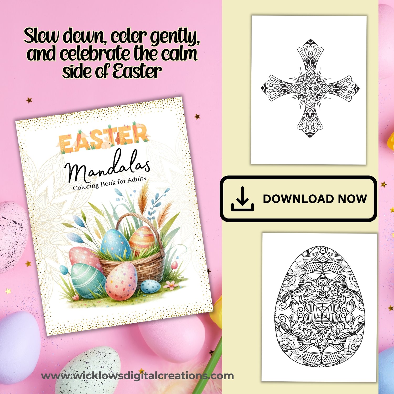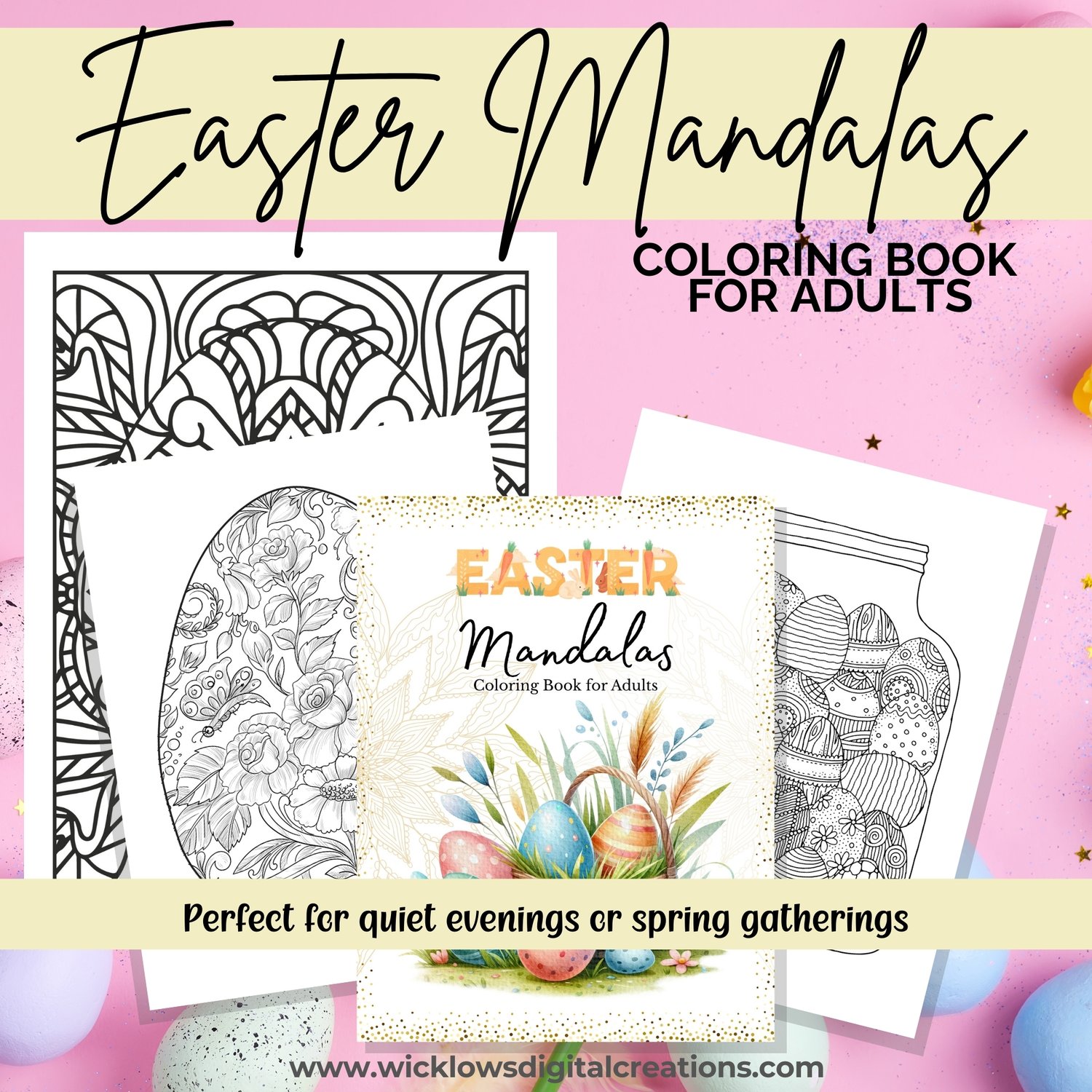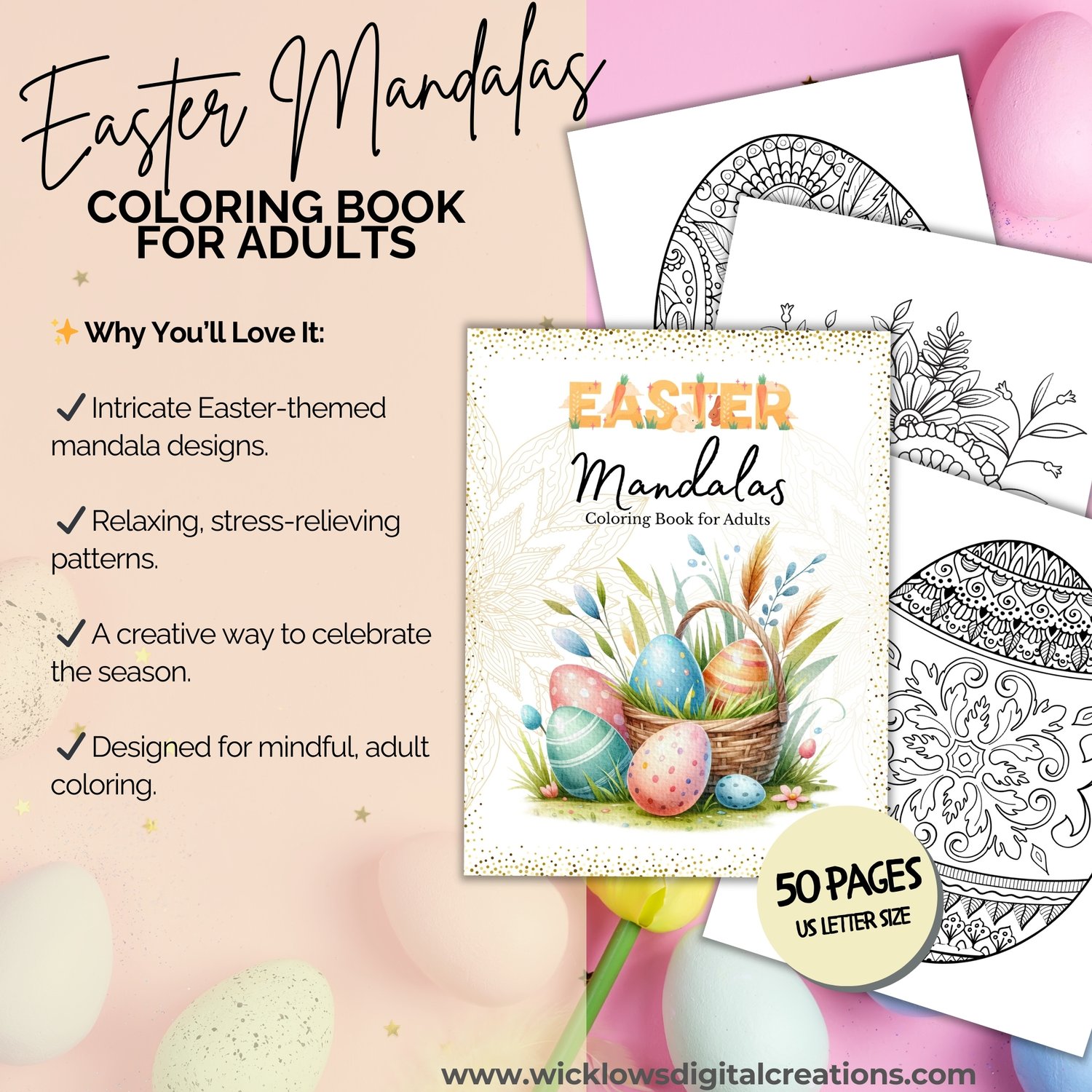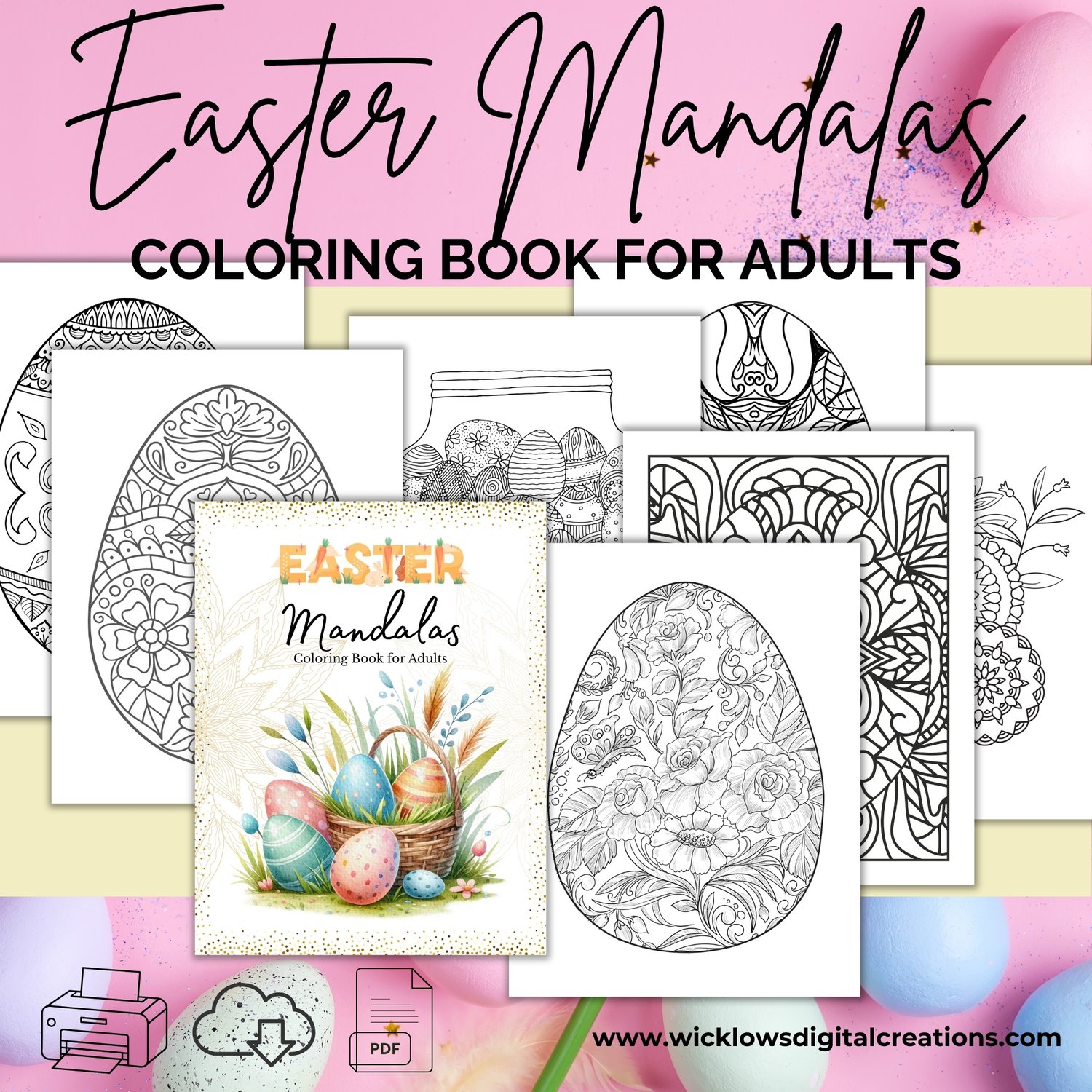 One (1) PDF file that contains the link to EASTER MANDALAS COLORING BOOK FOR ADULTS, size 8.5 in X 11 in