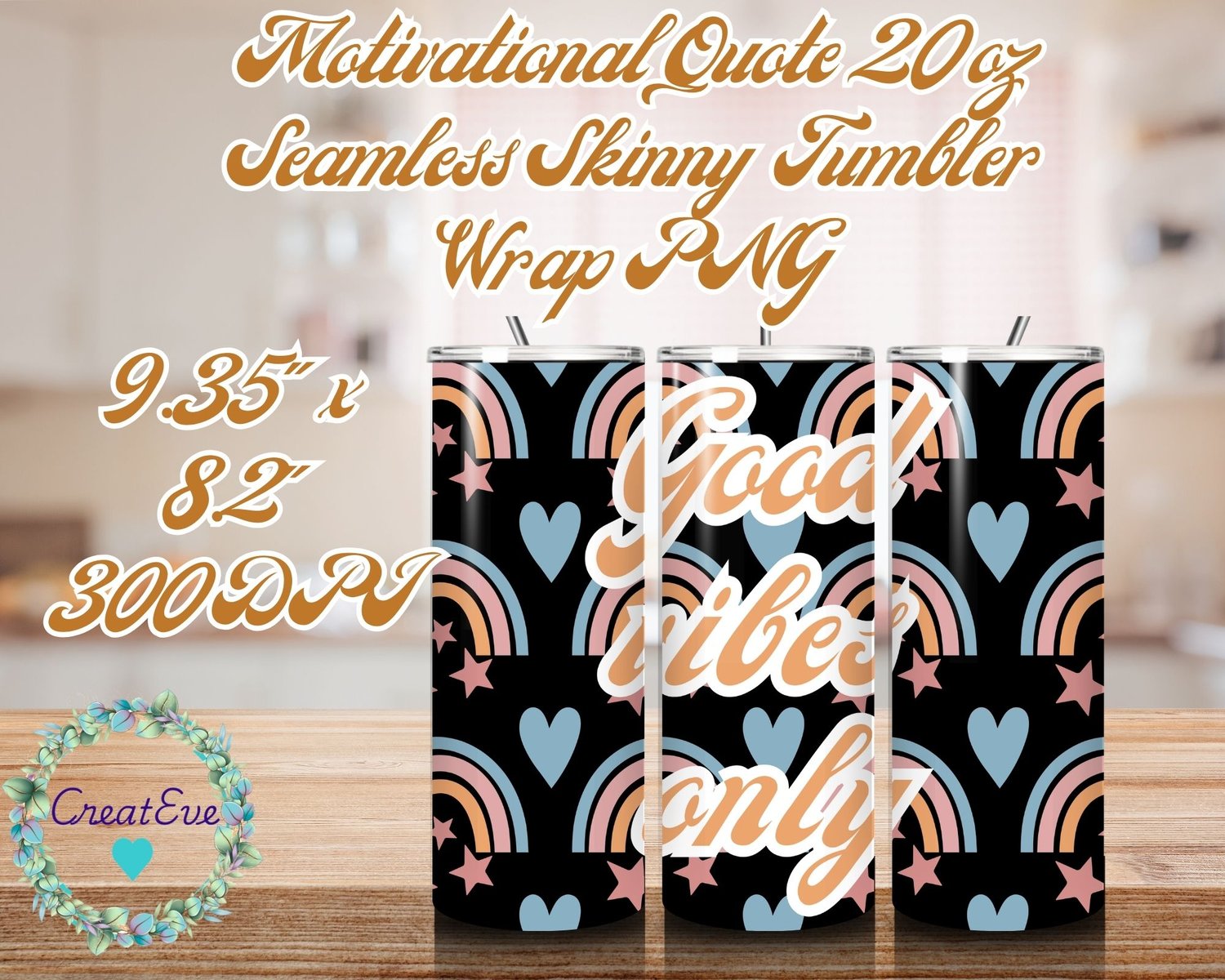 Boho Motivational Quote Retro Vibe Seamless 20oz Skinny Tumbler Wrap PNG