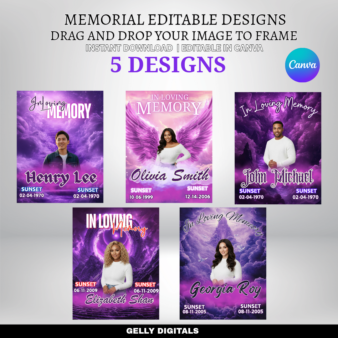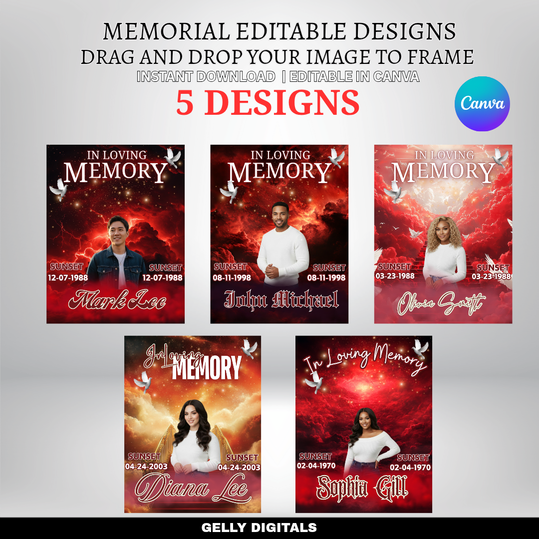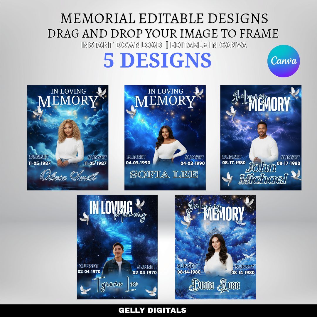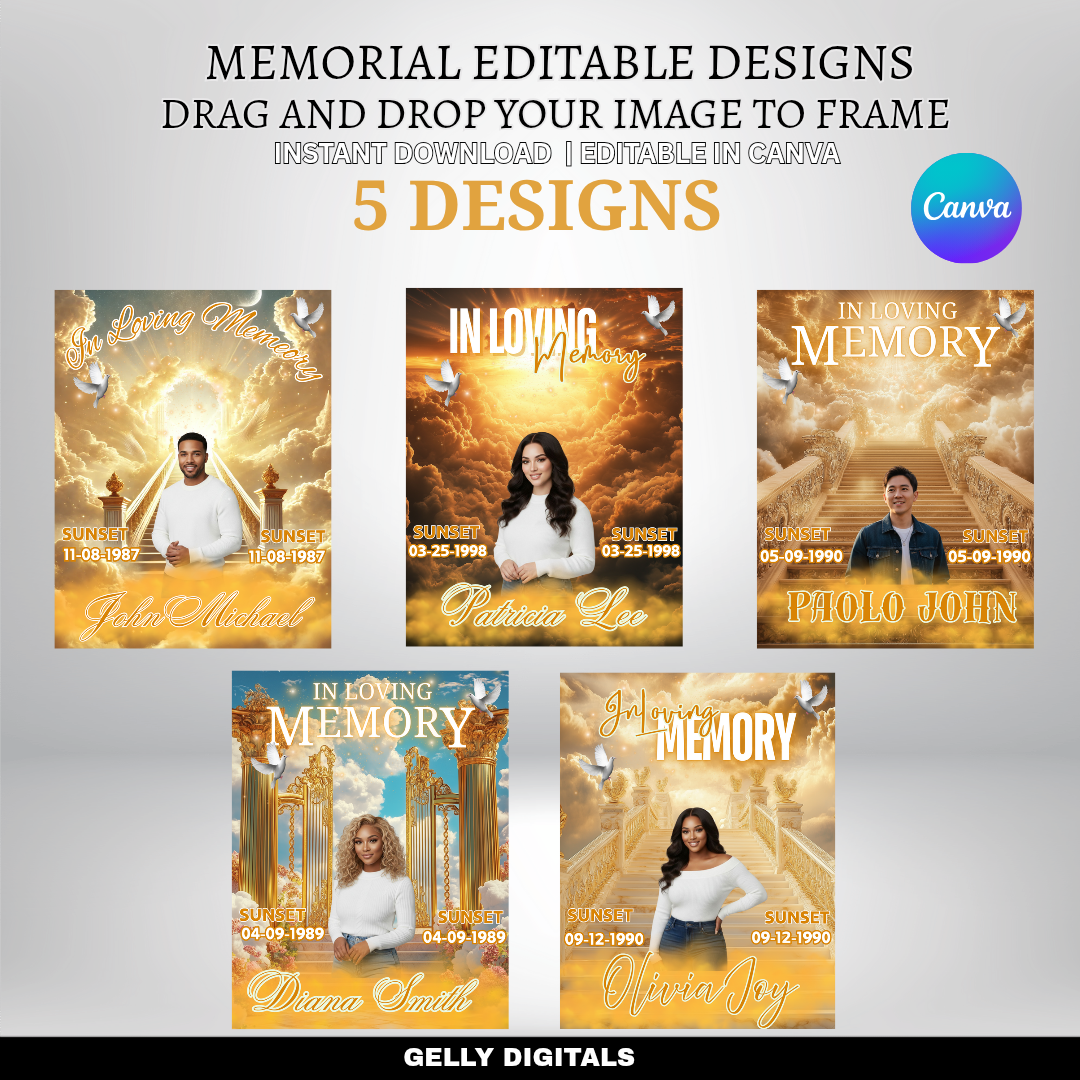 Celebrate and remember your loved ones with our Memorial Editable Canva Templates.