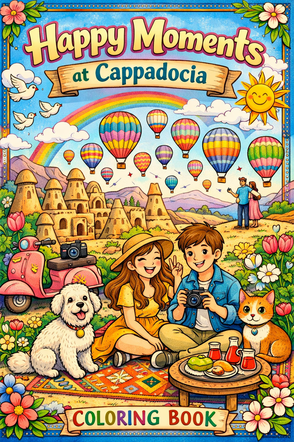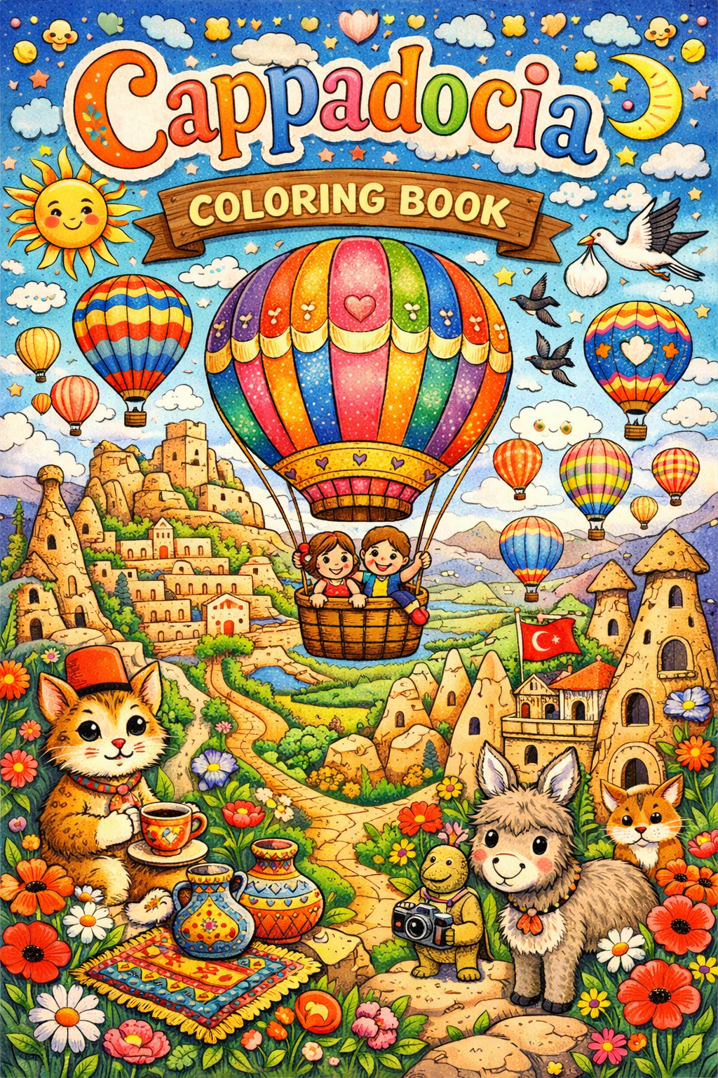 Happy moments at Cappadokia, 104 designs, coloring ebook, digital printable product, instantly download