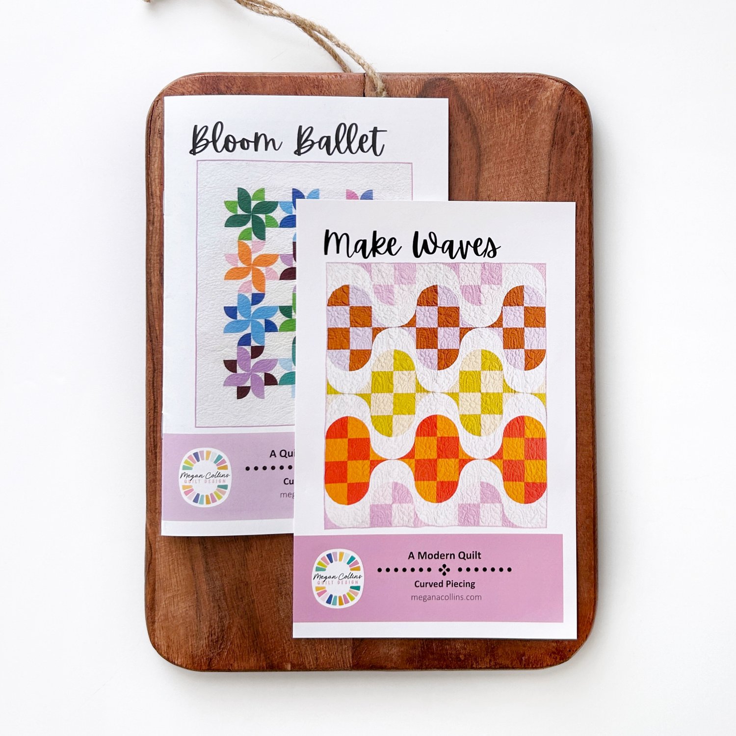 This print pattern bundle pairs Bloom Ballet and Make Waves, two modern quilt patterns built around curved piecing and motion. One dances with spinning flowers, the other flows with rhythmic waves—together they make a playful, satisfying duo for quilters who love curves and bold design.