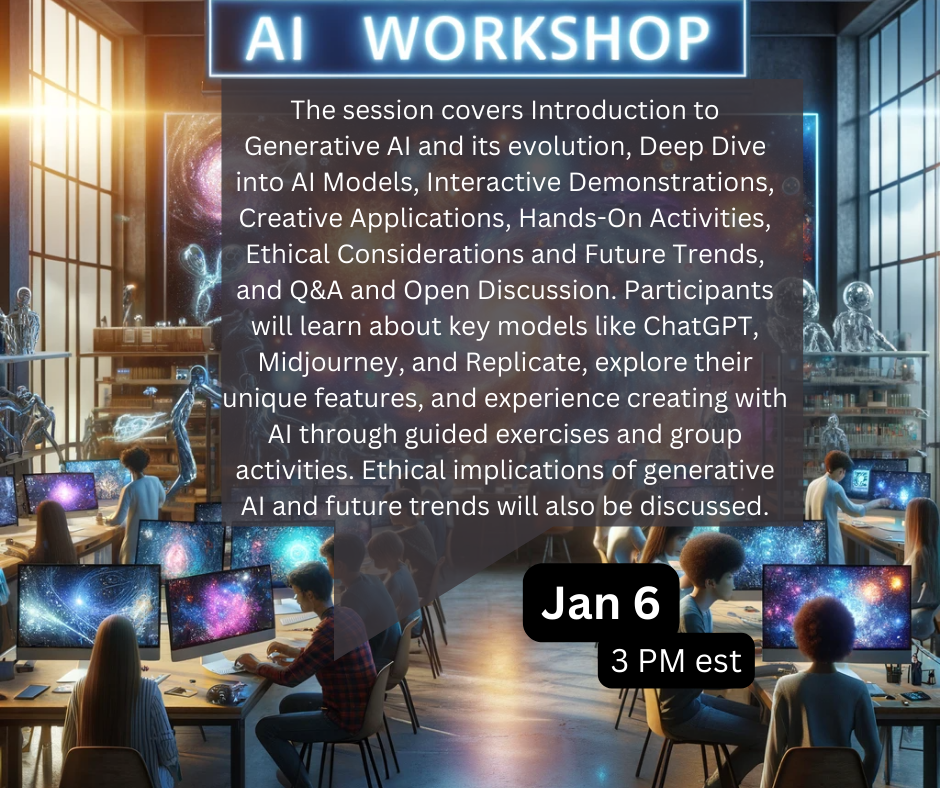 This workshop is ideal for creative professionals, educators, students, AI hobbyists, and anyone interested in exploring the potential of generative AI.