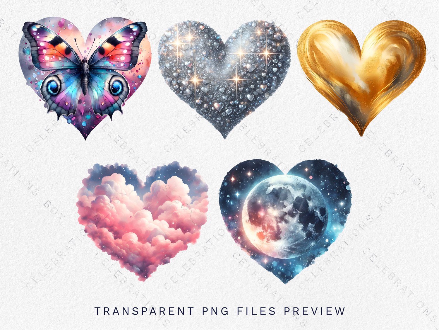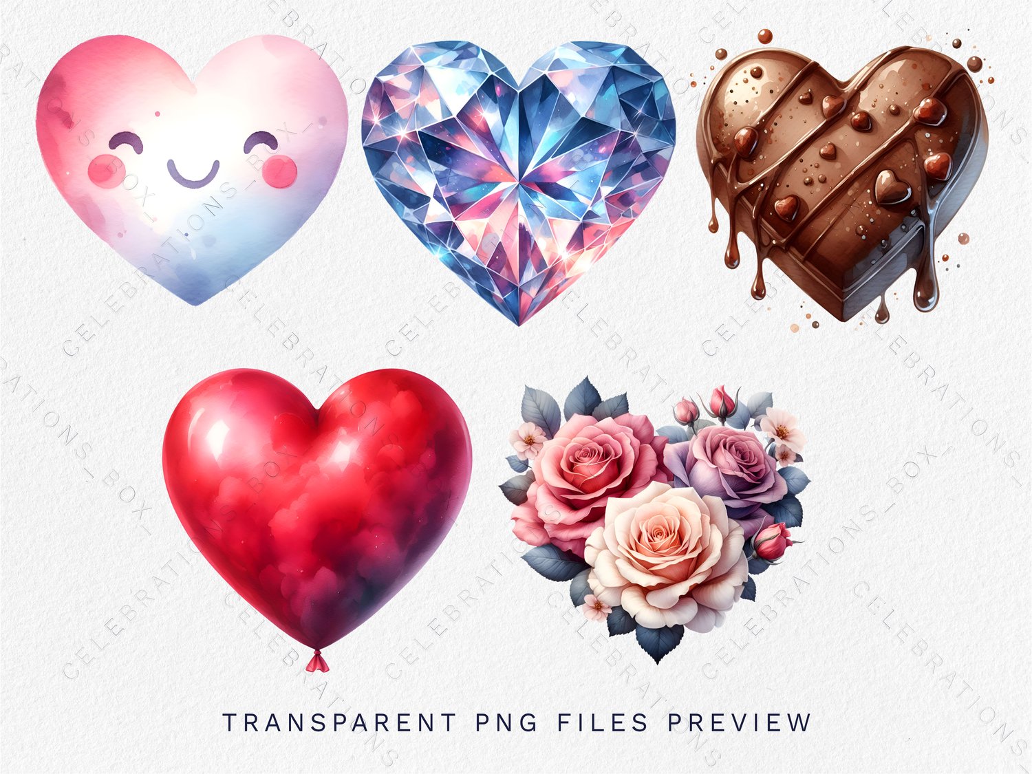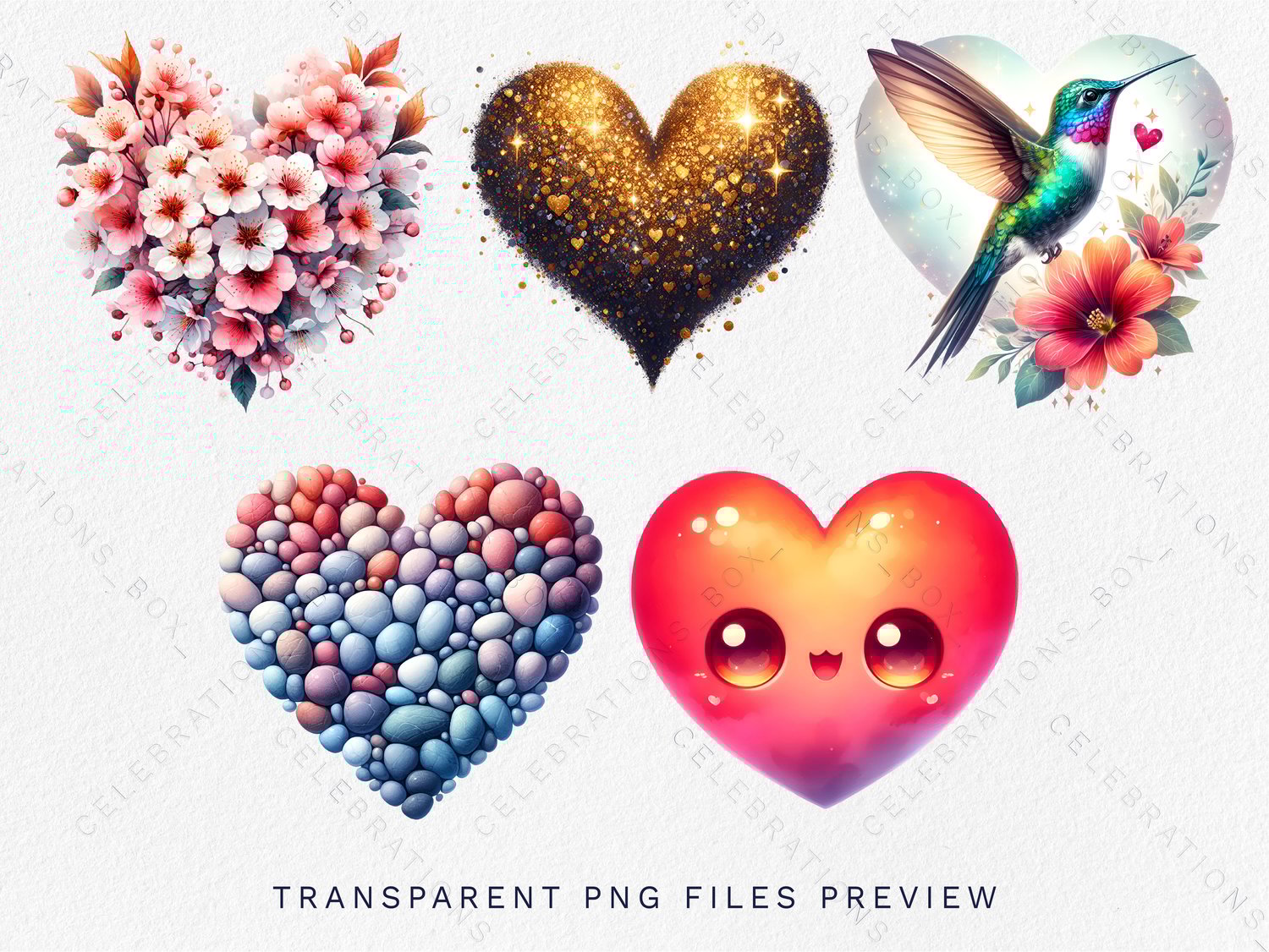 Elevate your creative projects with this Hearts Clipart set. Whether you're working on a Valentine's Day card, wedding invitation, or simply want to add a touch of love to your designs, these digital illustrations are perfect for your crafting needs.