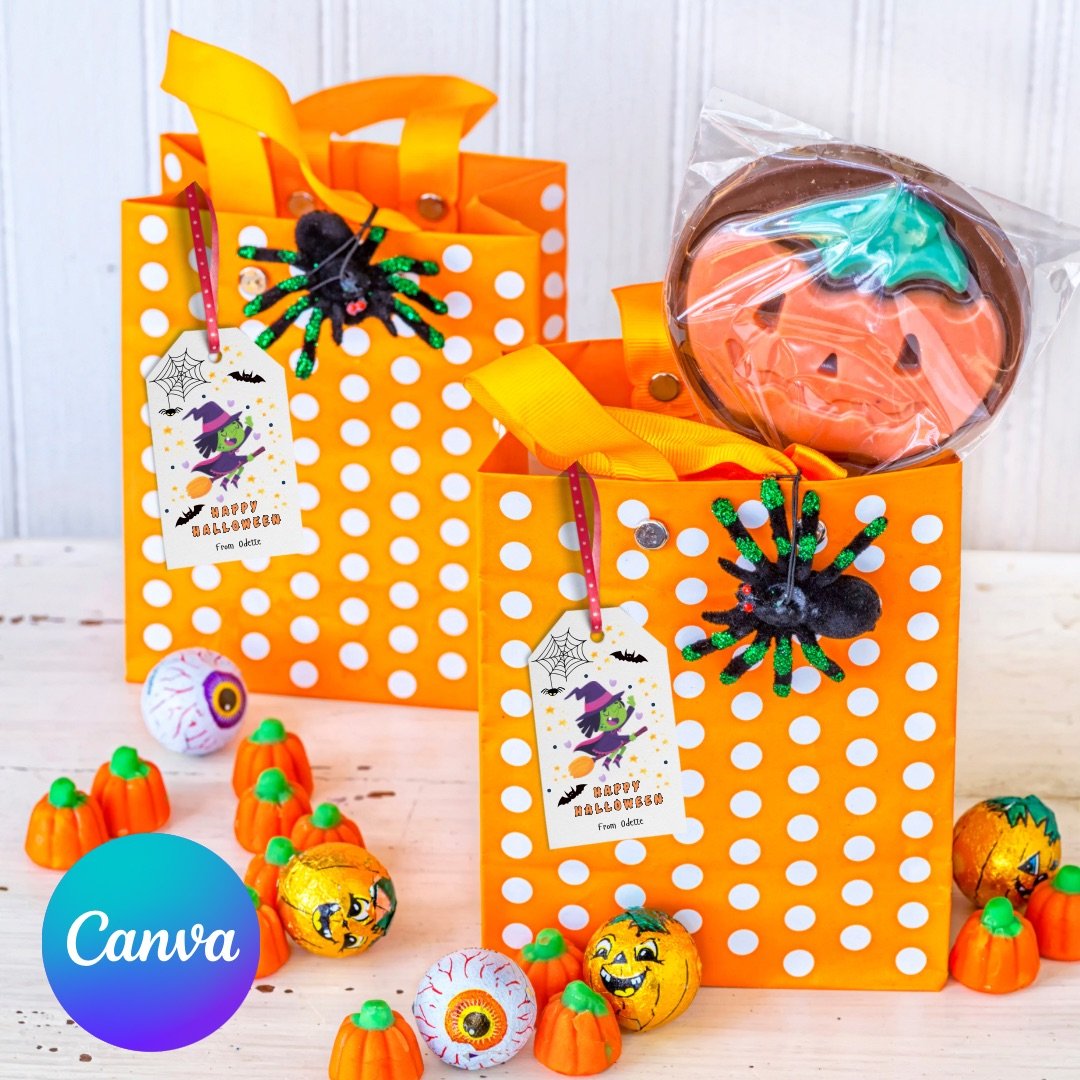Halloween Candy Tags | Editable 2x3.5 Inch Tags | Printable Trick or Treat Labels | Customizable Canva Template