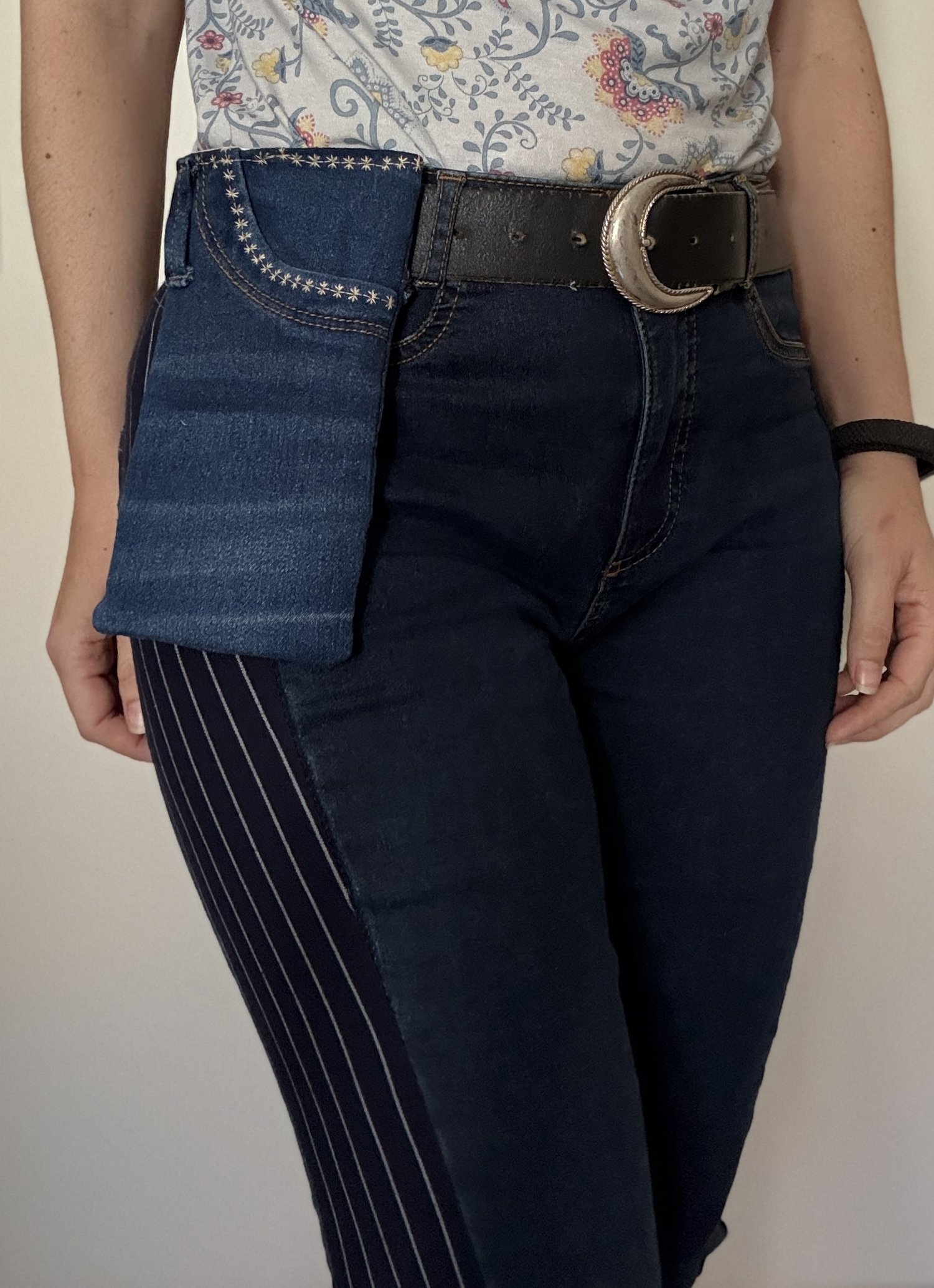 This mini crossbody bag began life as a pair of jeans — thoughtfully reimagined into a practical and stylish accessory. Each piece is handcrafted from reused denim, celebrating the beauty of repurposed materials while helping reduce waste. Natural variations in color and texture make every item truly unique.