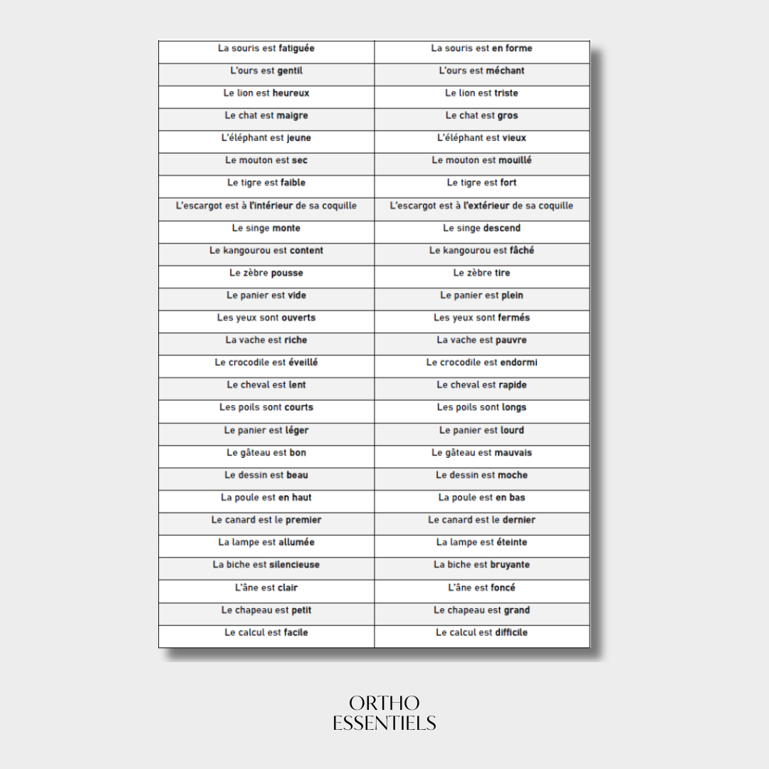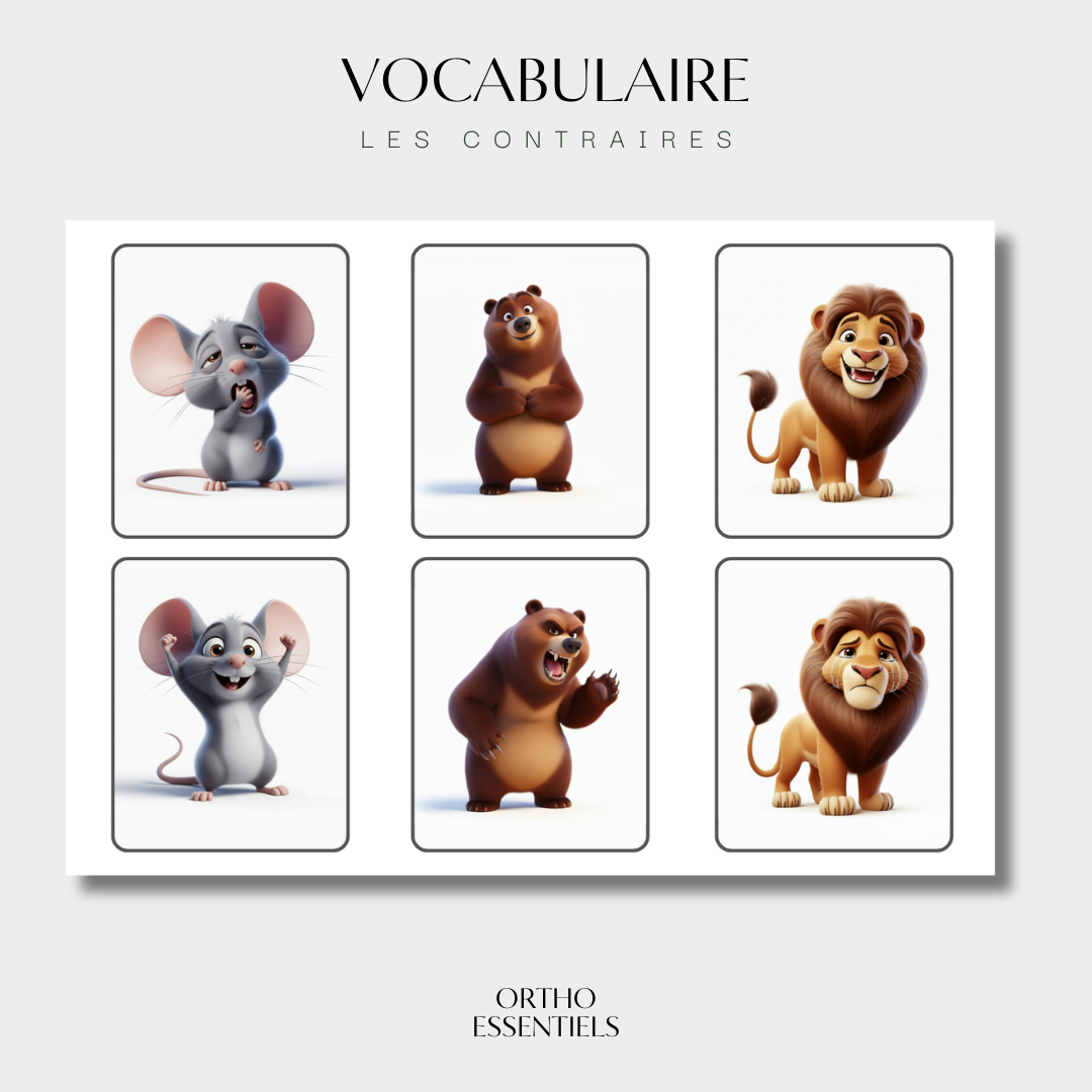 - Chaque paire met en scène un animal dans deux situations opposées.