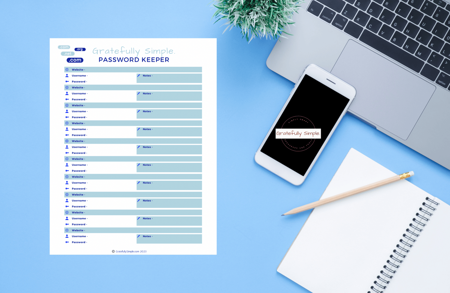 Password Keeper in multiple color schemes by Gratefully Simple Downloadable Printable