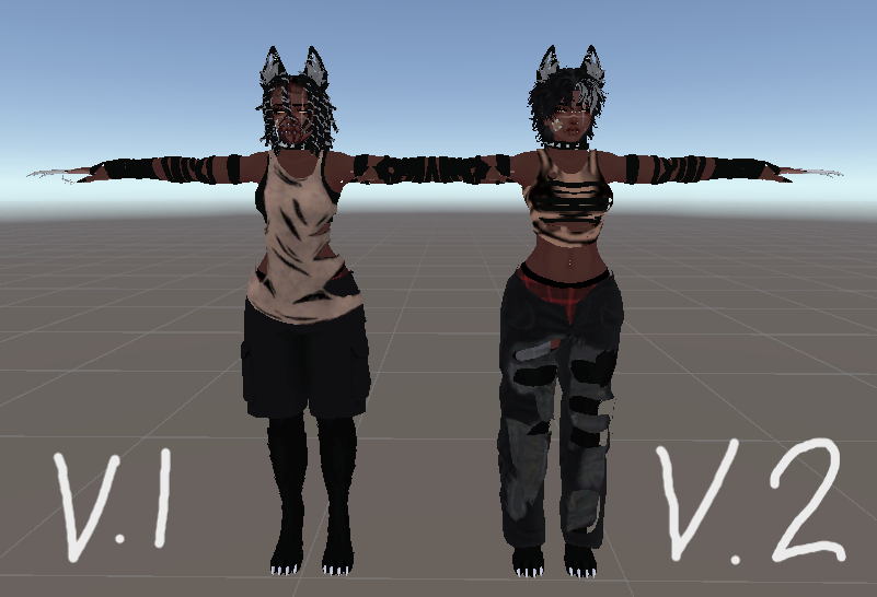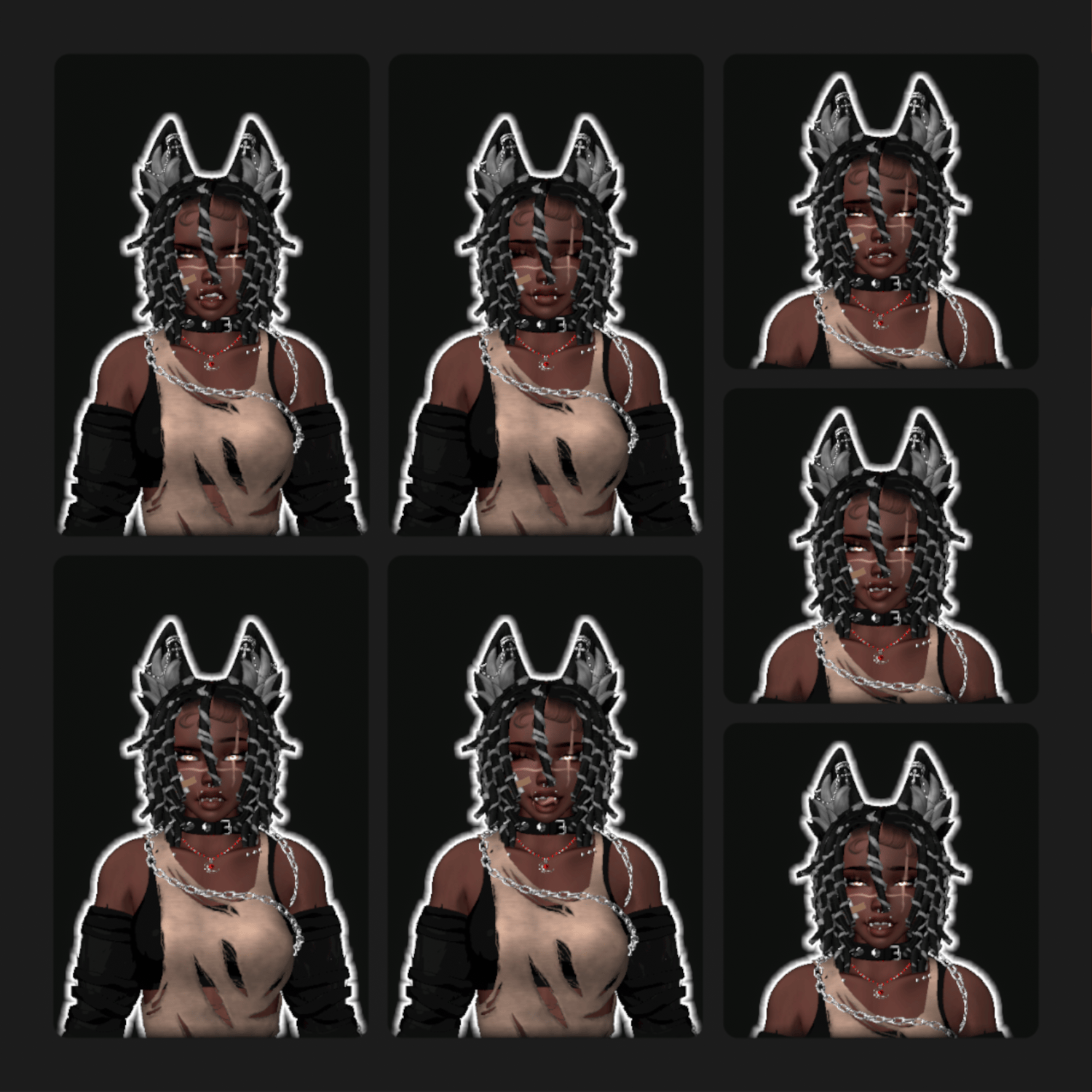 ✁‧‧‧ Toggles ⋮⋮ 4 Tops, 4 Bottoms, 3 Shoes, Headphones, Shades, Glasses, Muzzle, Face Bandaid, Mouth Pastry, Face Piercings, Collar, Moon Necklace, Body Chain, Body Piercings, Arm Wrap, Rings, Wedding Ring, Belly Piercing, Kneed Pads, Wolf Ears, Wolf Arms, Wolf Tail, Wolf Legs, 3 Hairstyles, Metal Swaps, Tons of Color Swaps, Contacts, Glasses Falling System, Pic Bracelet, Claws, Skateboard, Flow Toys, Blink Anim., Expression Lock, Gogo Loco & FaceTracking(OPTIONAL)