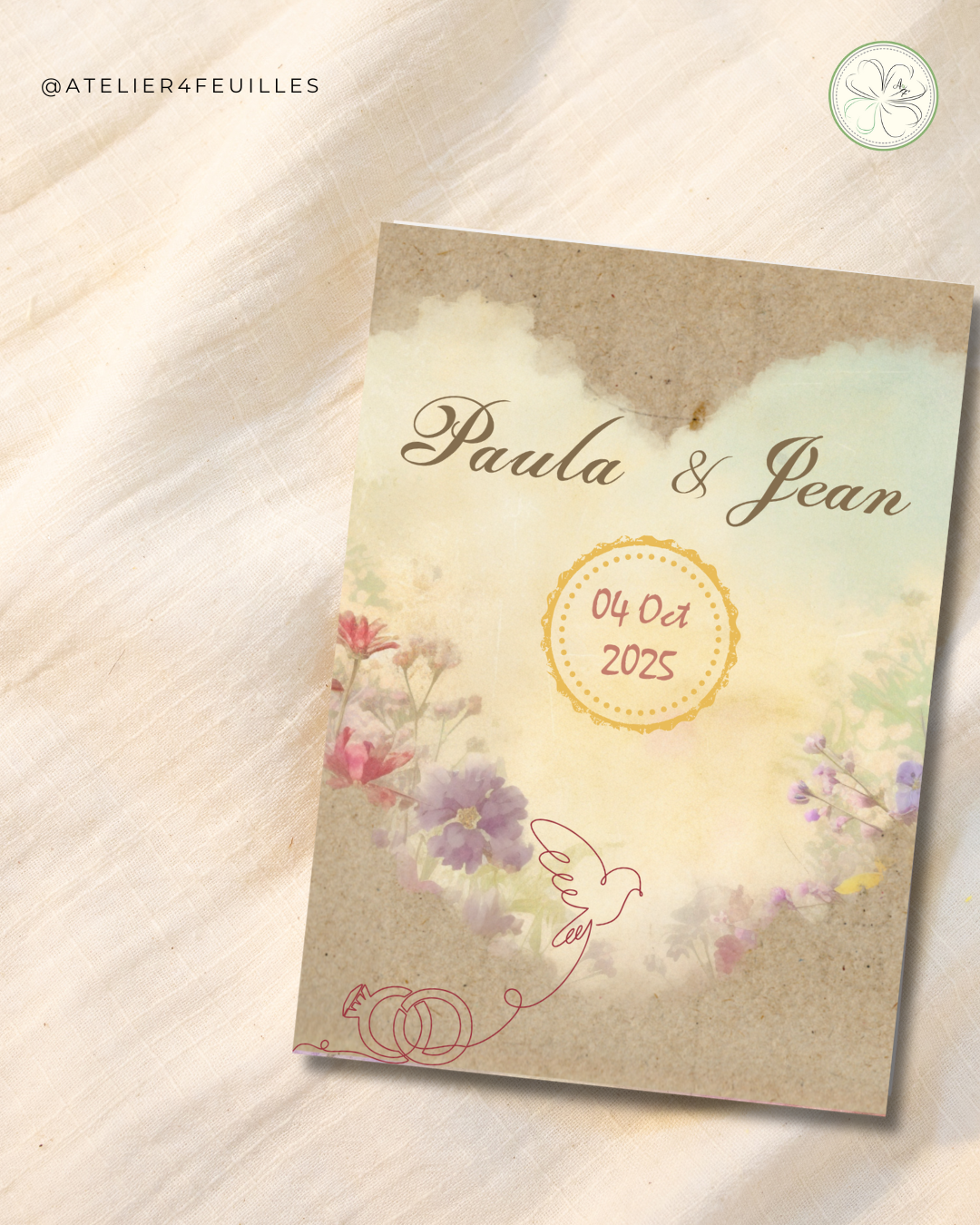 Un faire-part de mariage au style vintage, pensé pour ceux qui aiment les détails authentiques et le charme d’autrefois.