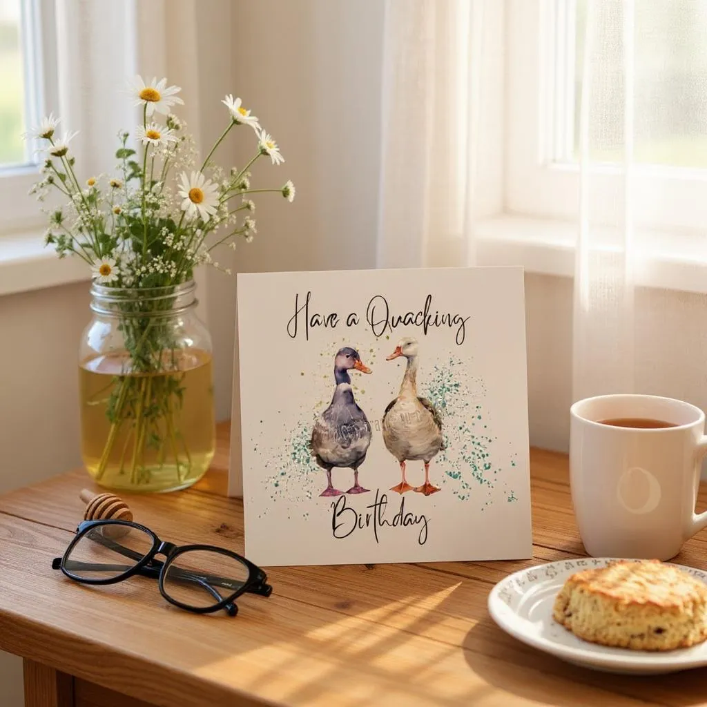 Handmade personalised duck card, all made to order - these make the most beautiful addition for birthday, get well, retirement, thinking of you, thank you.