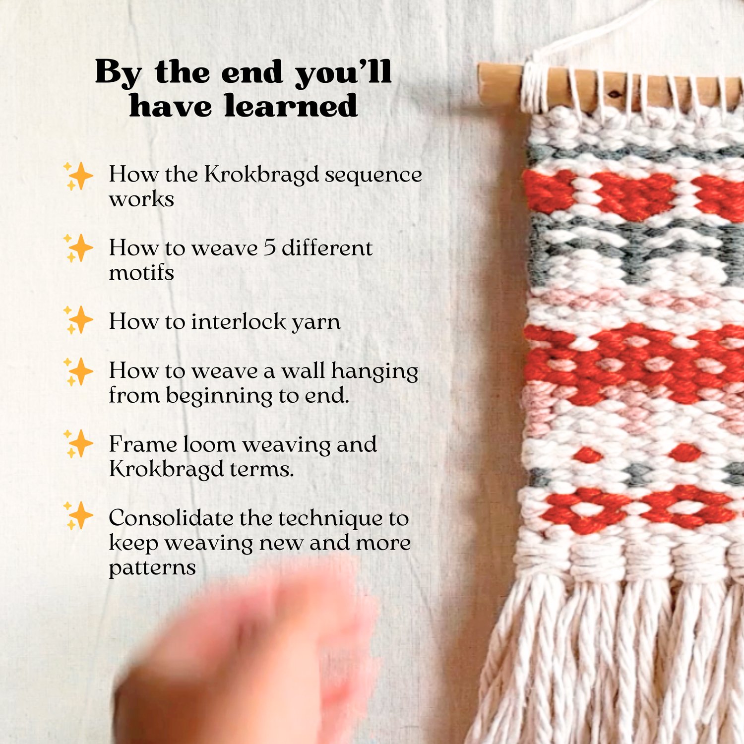 Krokbragd Online Weaving Class - Video instructions + Complete PDF guide - Weave a wall hanging on a Frame loom - By Nushu Textiles