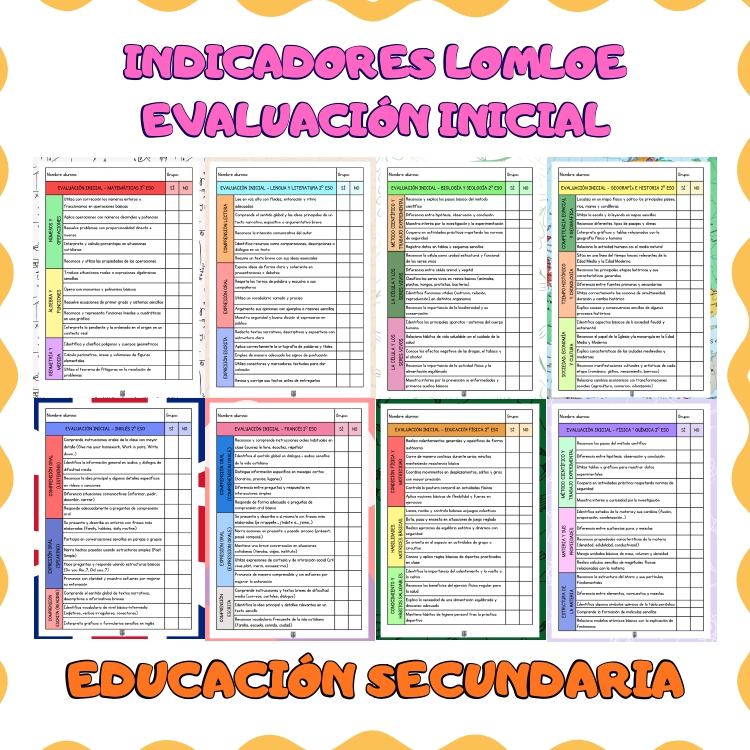 Un completo material educativo con indicadores de evaluación inicial LOMLOE para todas las materias de Educación Secundaria Obligatoria (1º a 4º ESO).