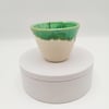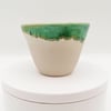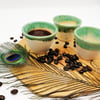Pahar espresso, verde cu alb, din ceramica, handmade, 130 ml