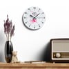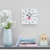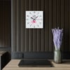 These clocks come in two shapes (round and square) and two sizes. Each clock has a keyhole at the back for easy hanging on a wall. They're made from an acrylic material that looks like glass but is more durable and sturdy.
