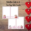 Just print them out and you’re all set! Whether you’re writing a heartfelt note or just adding a fun touch to a gift, these playful designs are the purr-fect way to show you care. So why wait? Download your Printable Valentine Cats In Tea Cups Notepaper today and let the cuteness flow! Your 8 unique note cards will be delivered on 4 PDF pages. You'll love this Valentine Cat Note Cards. Order now!