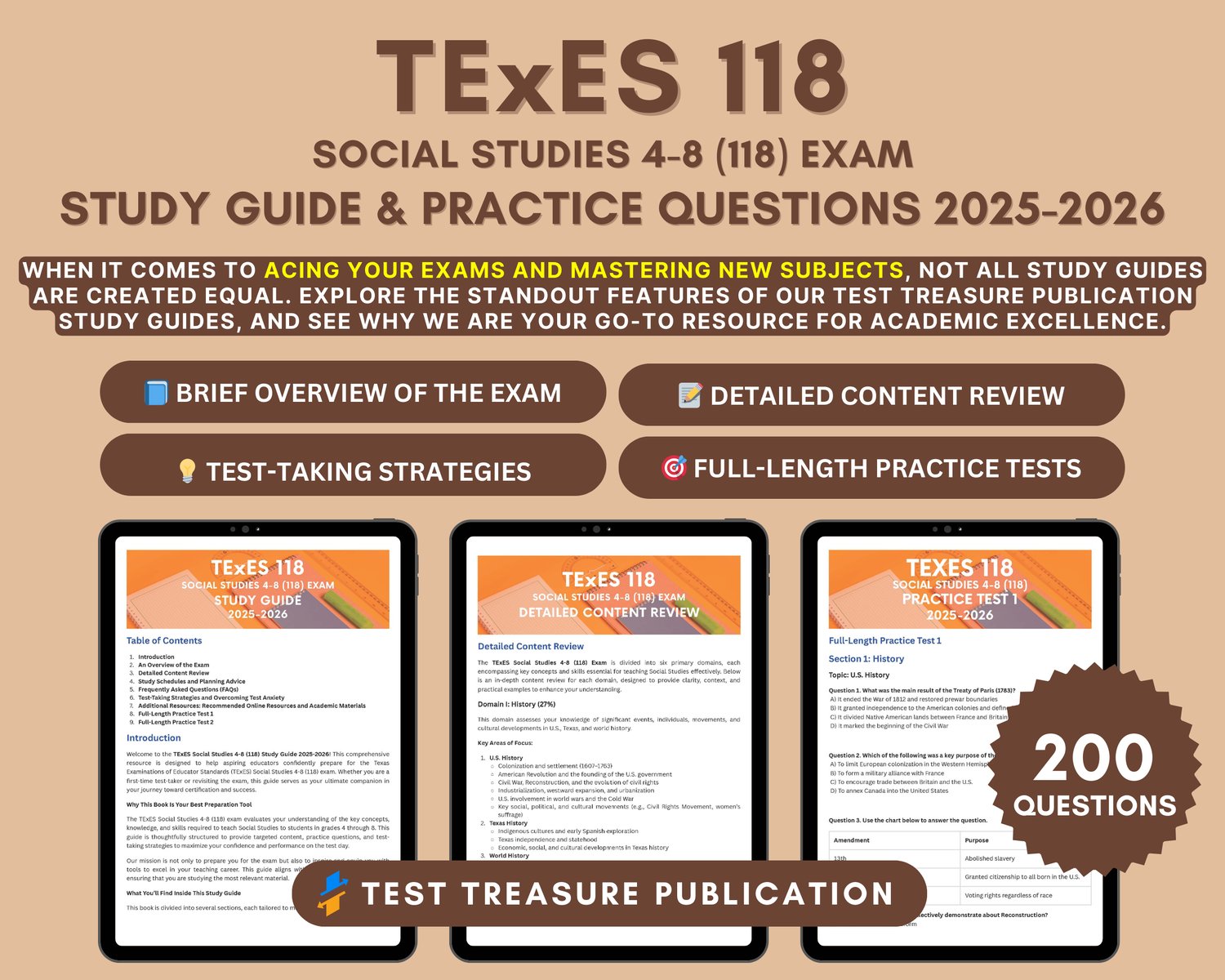 Grab your copy of the TExES Social Studies 4-8 (118) Study Guide 2025-2026 today and take the first step toward achieving your teaching dreams! With this guide, youβll gain the knowledge and confidence you need to pass your exam and inspire young minds.