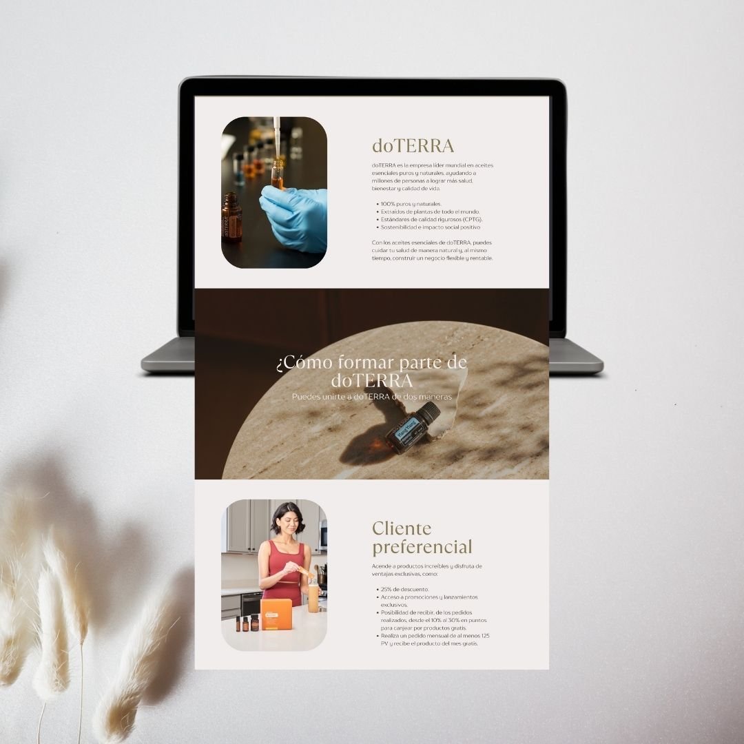 - Sección de presentación de doTERRA – Para educar a tus visitantes sobre la marca.