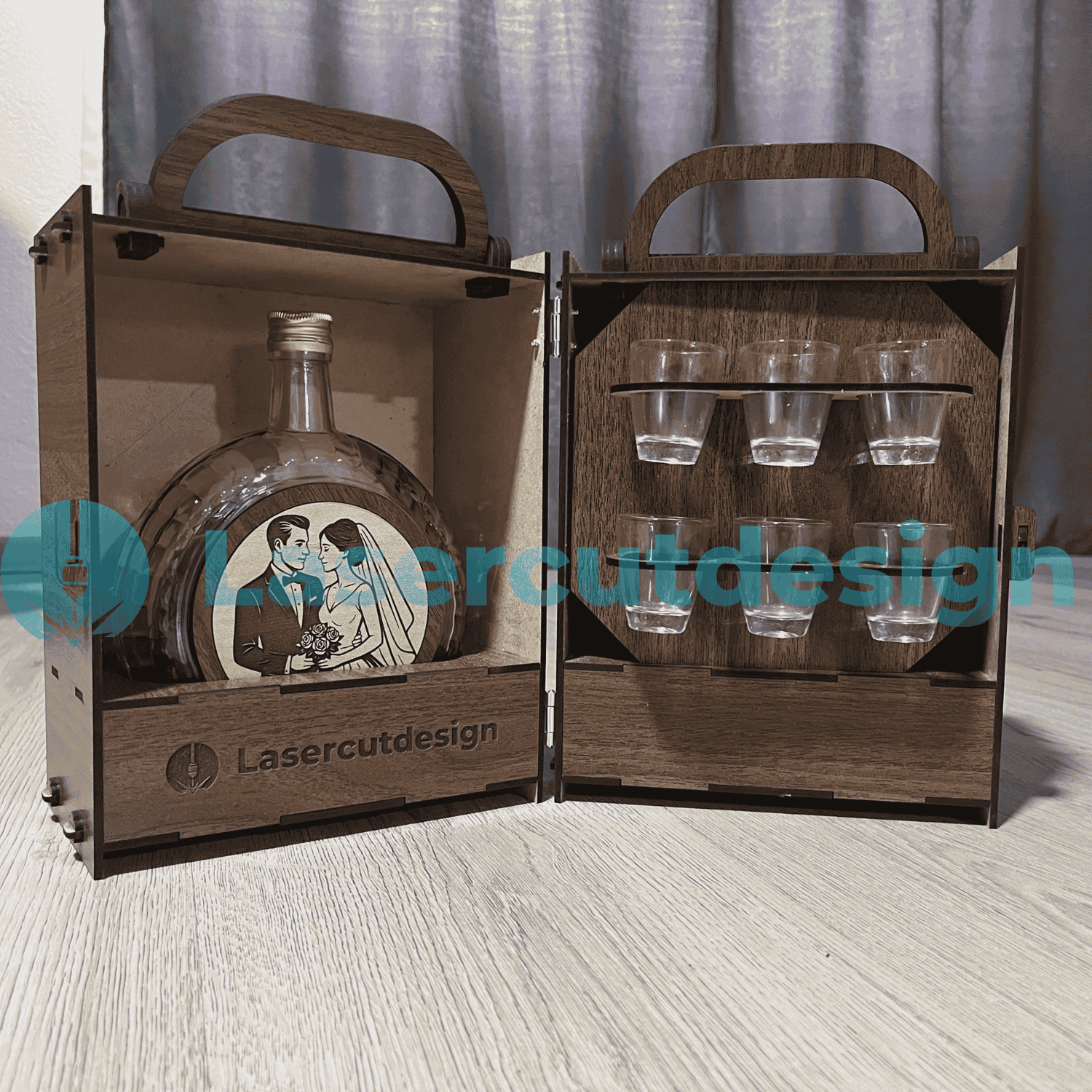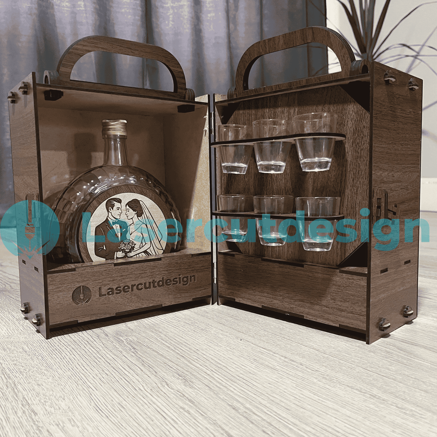 Mini Bar SVG DXF AI – Portable Bottle Box Laser Cut File for Bottle and Shot Glasses – Wooden Cube Bar Template for 3mm
