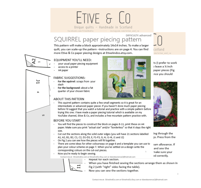 COPYRIGHT: Please note this pattern, Etive & Co Squirrel is copyrighted. You’re welcome to use this pattern for your own purposes and sell items made using the pattern on a small scale but please do not distribute the pattern or sell it as your own.