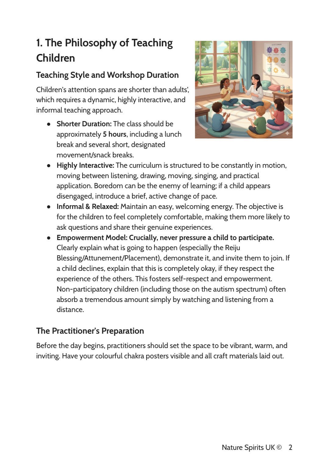 - For All Other Practitioners (Level 1/2): You are welcome to use all other elements of this guide (meditation, movement, energy ball, workbook) to teach children about energy. Simply replace the Attunement section with more in-depth practice of: