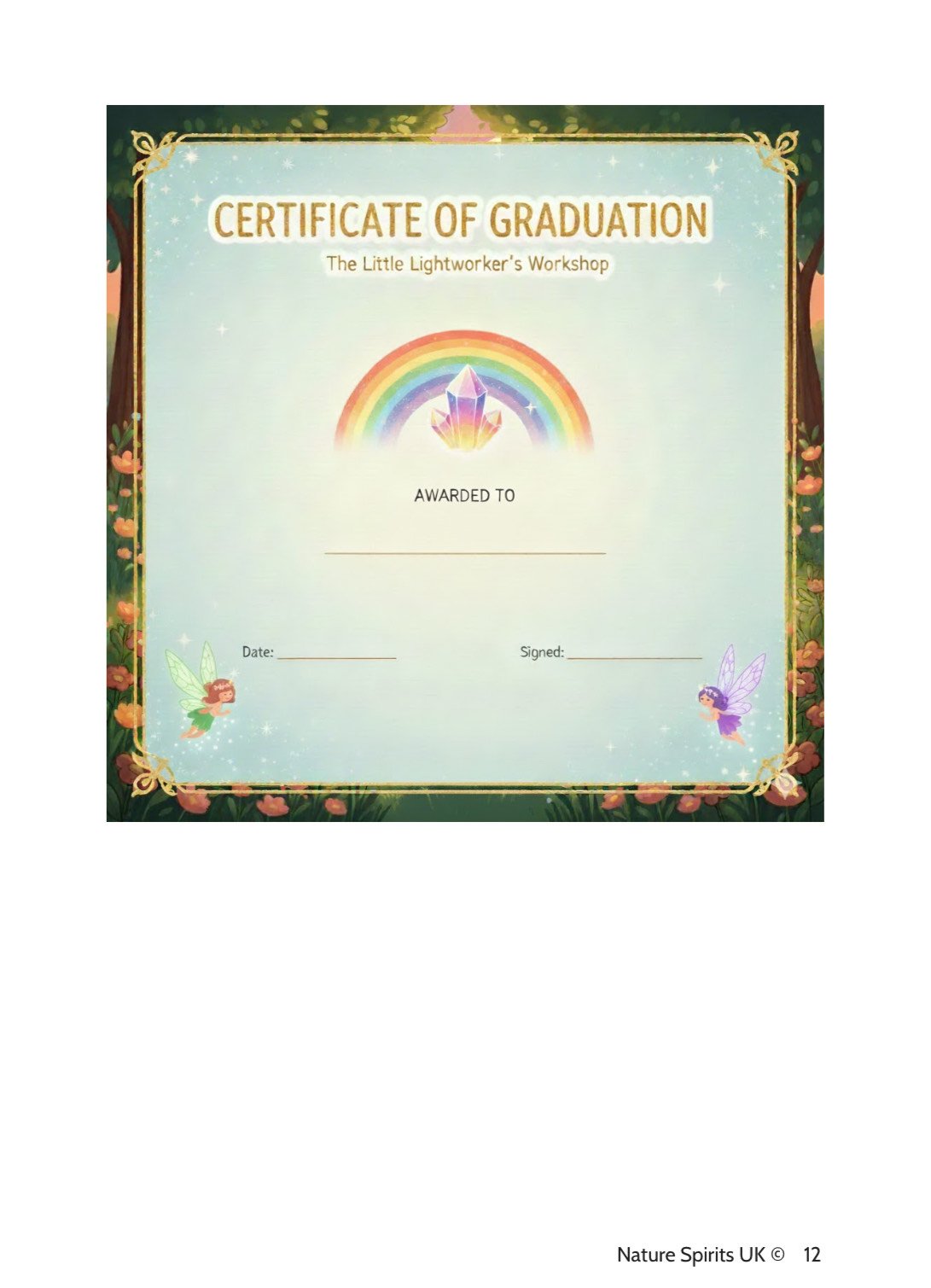 - 🏅 A beautifully designed certificate to recognise the child's achievement and participation in The Little Lightworker's Workshop.