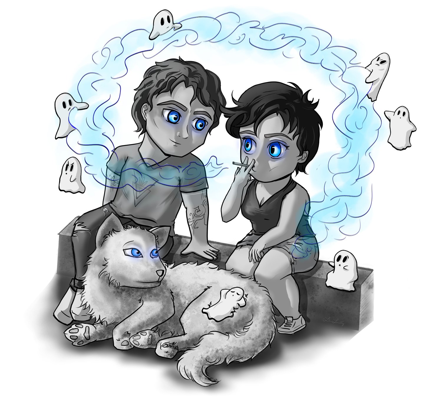This adorable sticker depicts Zander and Callum, sharing a smoke alongside Rhia as the spirits dance around them.