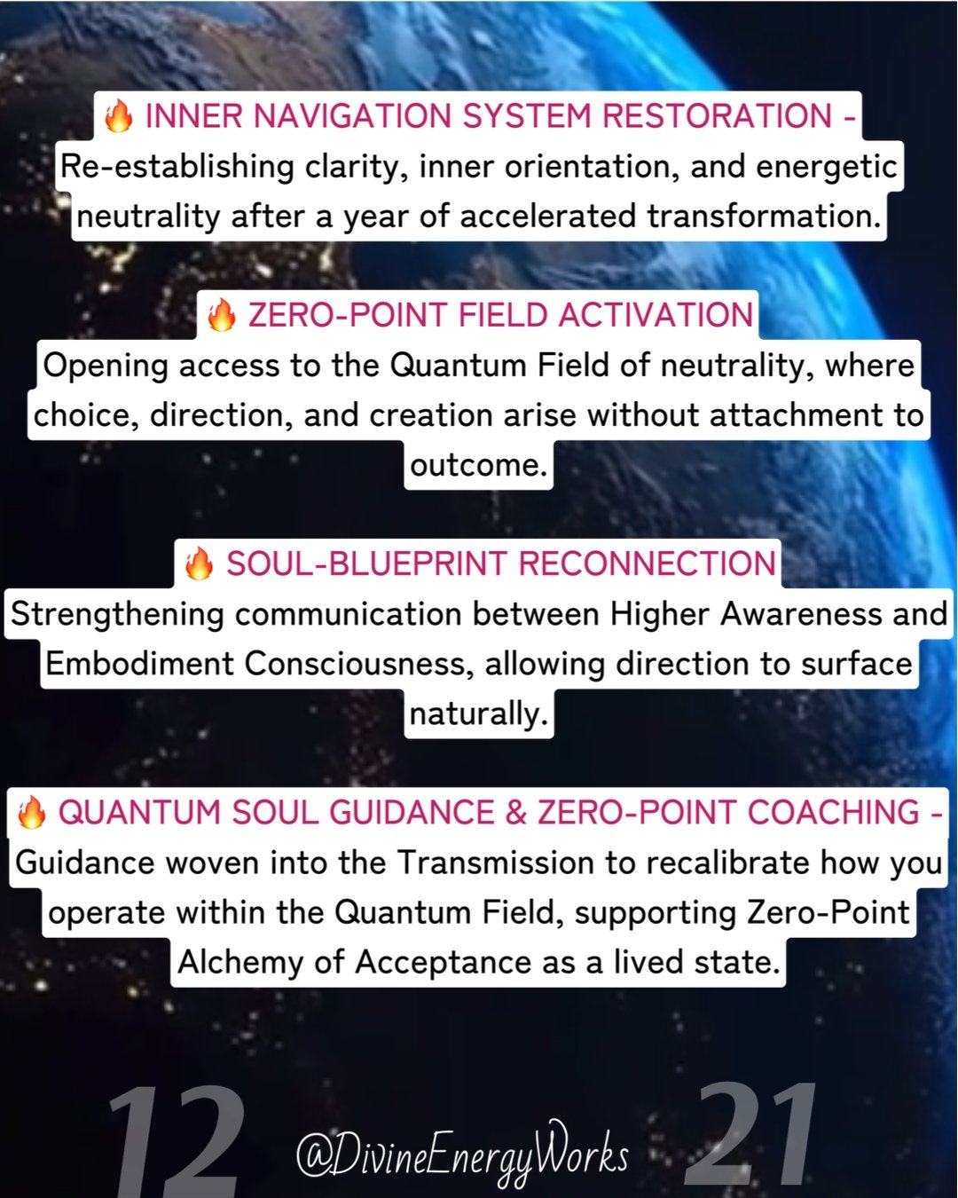 This Transmission works with Zero-Point Alchemy of Acceptance - supporting the stabilization of Union-based Energetic Architecture, as we cross the December Solstice Gateway and anchor new timelines through the 12-21 Mirror Code.