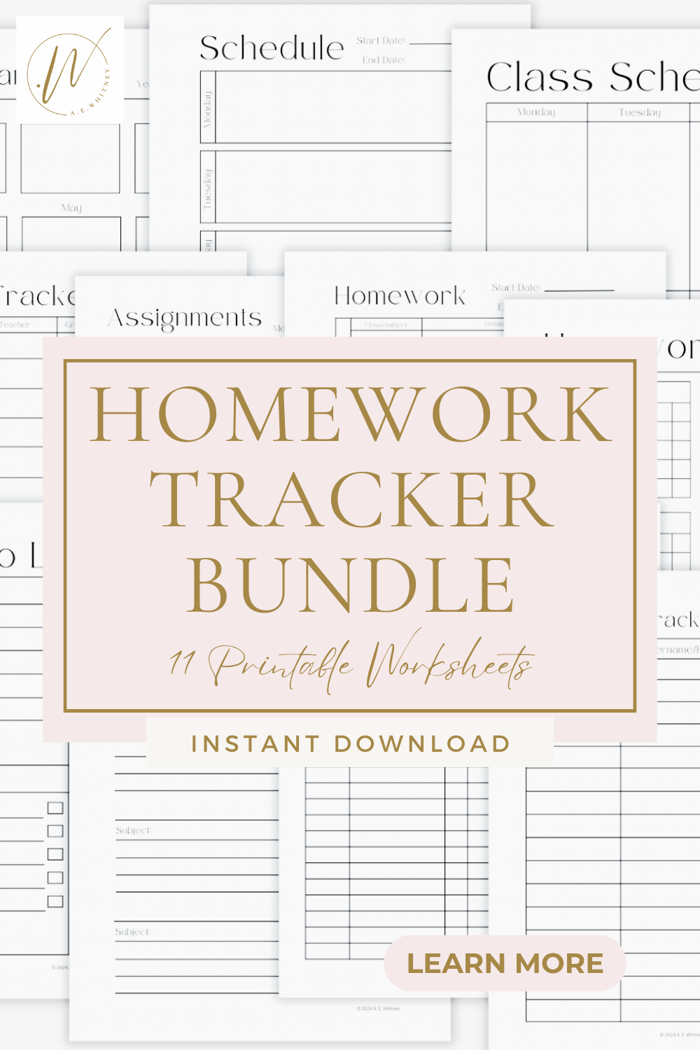 Minimalist Style Homework Tracker | Printable Worksheet Bundle