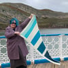 Inspired by the changing shades of the sea, and the ironwork on Llandudno Pier, this shawl is an easy, yet satisfying, knit. The asymmetrical garter stitch triangle is broken up with lace panels that highlight the colour changes. The pattern has both charted and fully written options.