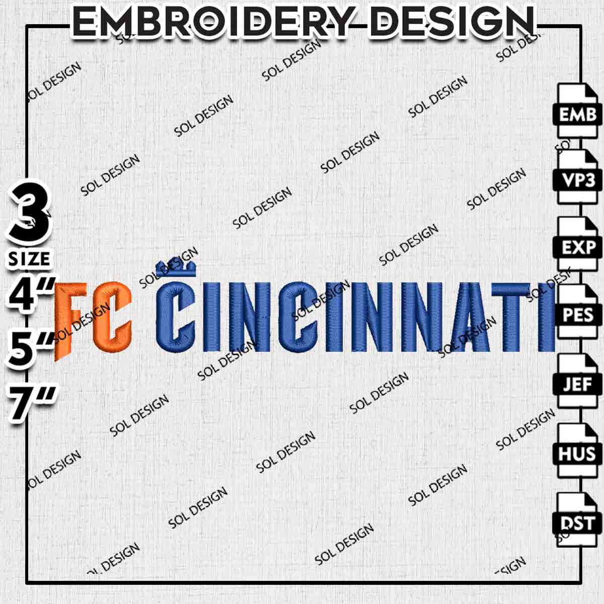 MLS FC Cincinnati Wordmark Logo Embroidery Designs, FC Cincinnati Embroidery Files, MLS FC Cincinnati Soccer Team Logo Embroidery, Major League Soccer Machine Embroidery Design, Digital Download