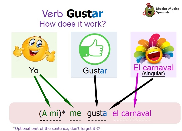Verb Gustar. Learn easily with this interactive PDF how to use this and other similar verbs. Then practice for free with entertaining tests. Enjoy!