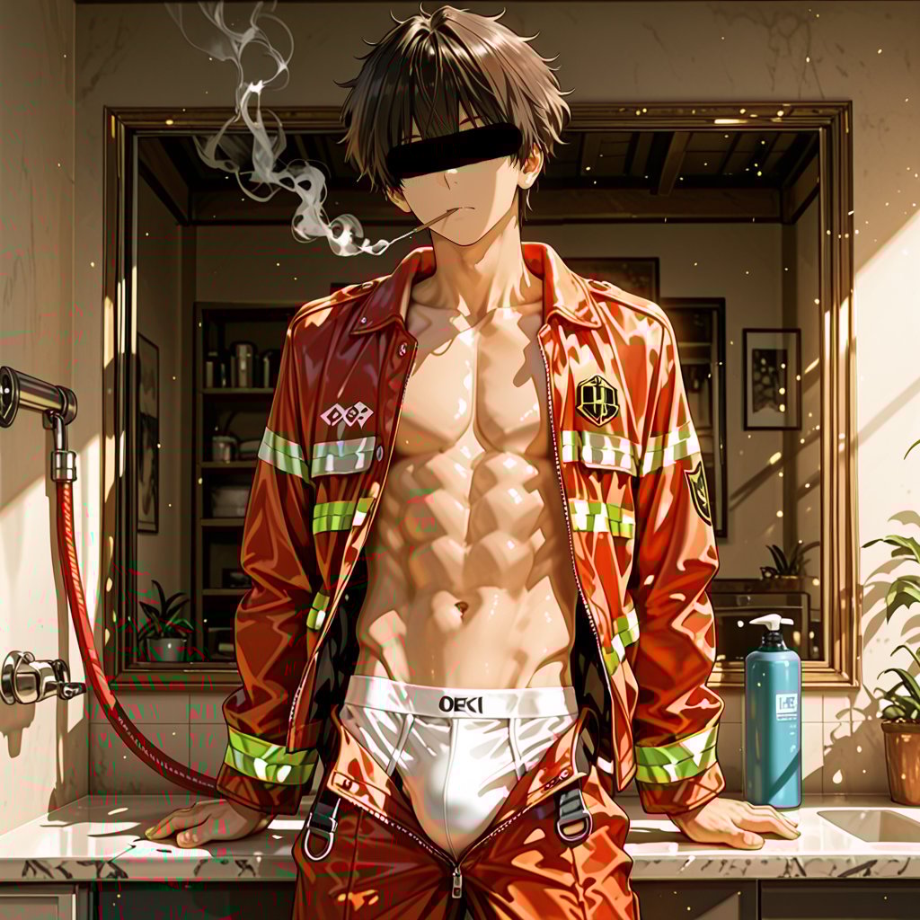 The theme is ""work scenes"" of firefighters, and the charm of the masculine characters of the firefighters is boldly expressed.