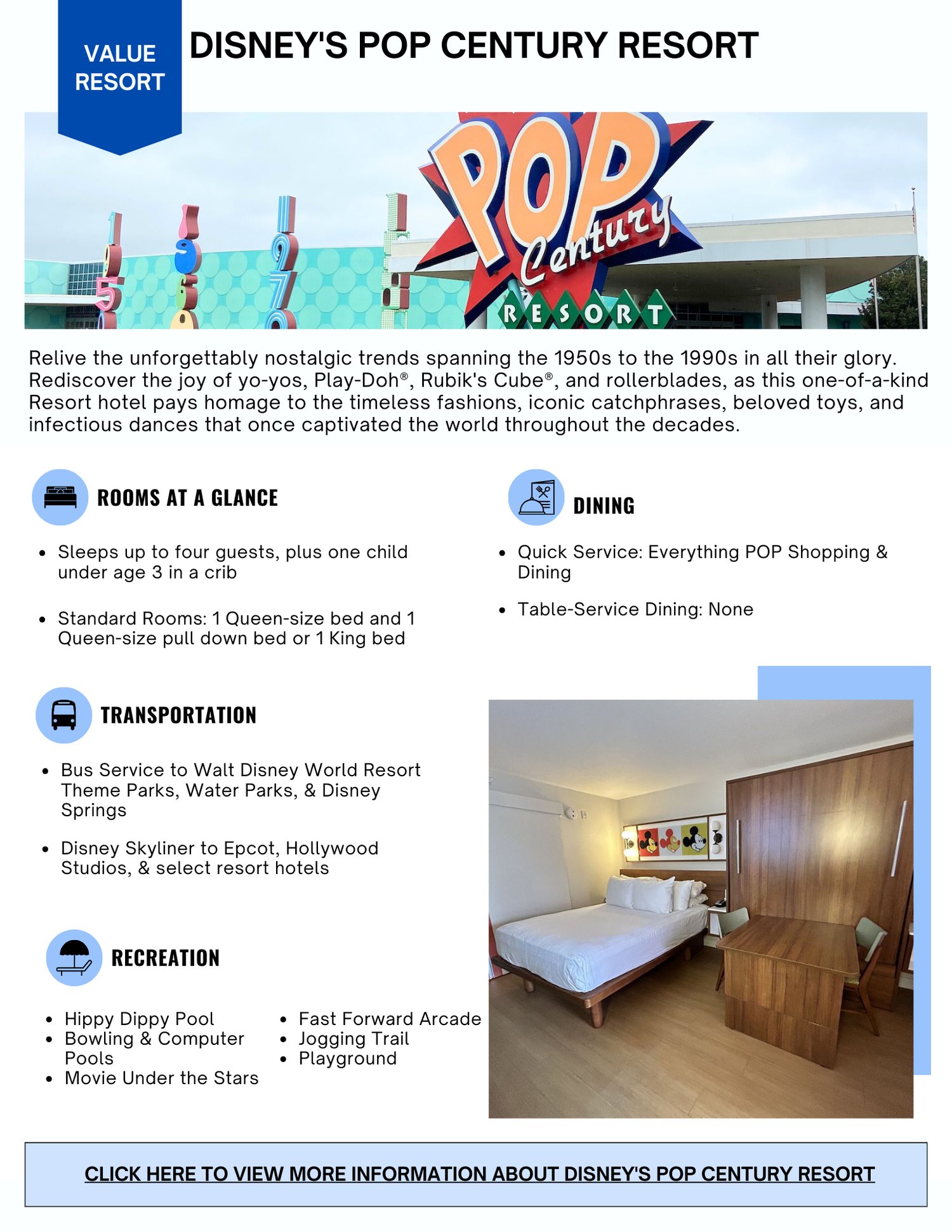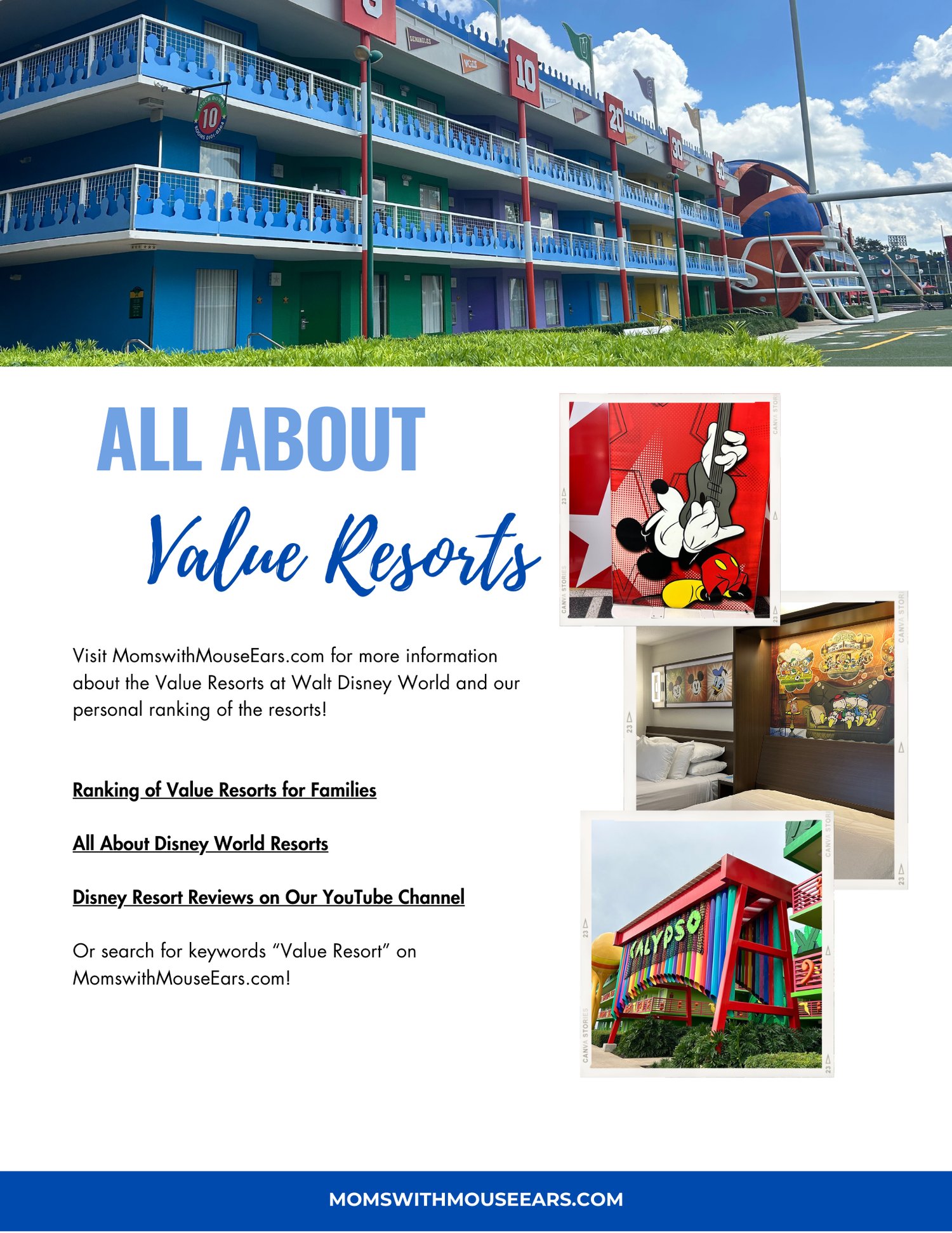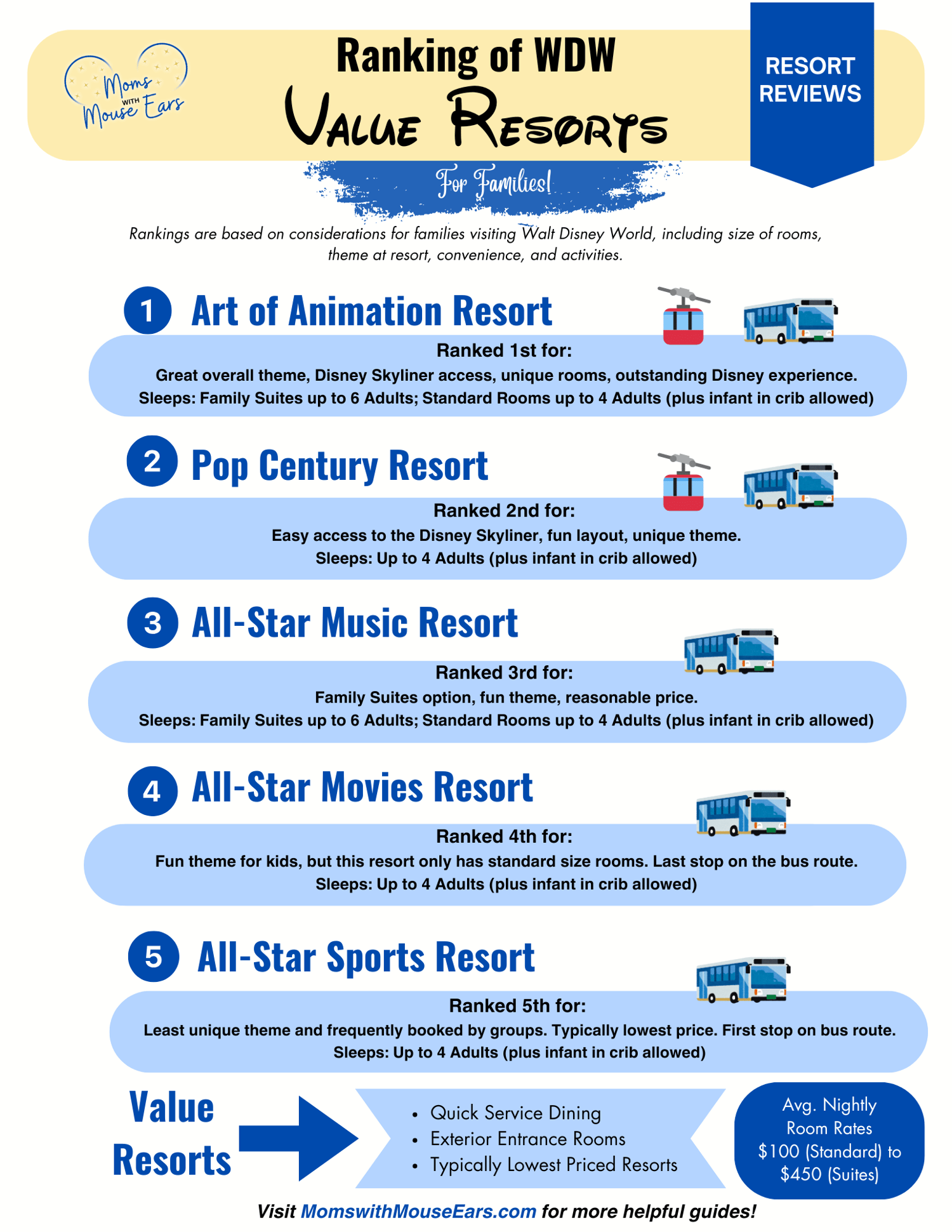 - Information Sheets for every Value, Moderate, & Deluxe Resort!