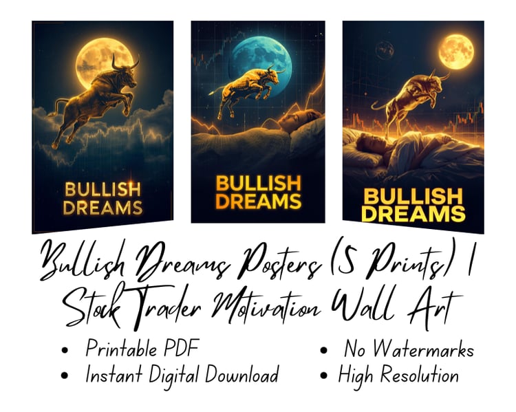 5. Bullish Dreams Posters (5 Prints) | Stock Trader Motivation Wall Art | Trading Desk Printable Decor