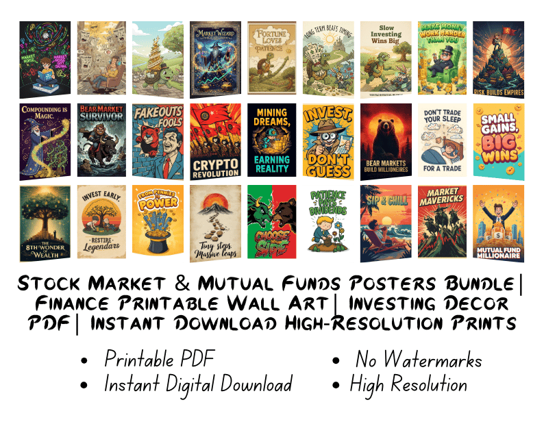 Transform your workspace, trading desk, or home office into a powerful wealth-building environment with this ultimate Stock Market & Mutual Funds Posters Bundle — a massive collection of finance-inspired printable wall art designed for investors, traders, and money-minded creators.