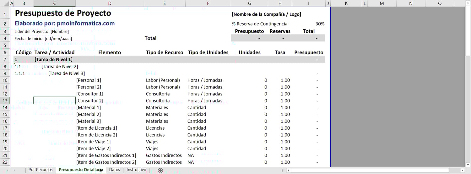Plantilla de presupuesto de un proyecto – Editable, automatizada y con instructivo detallado