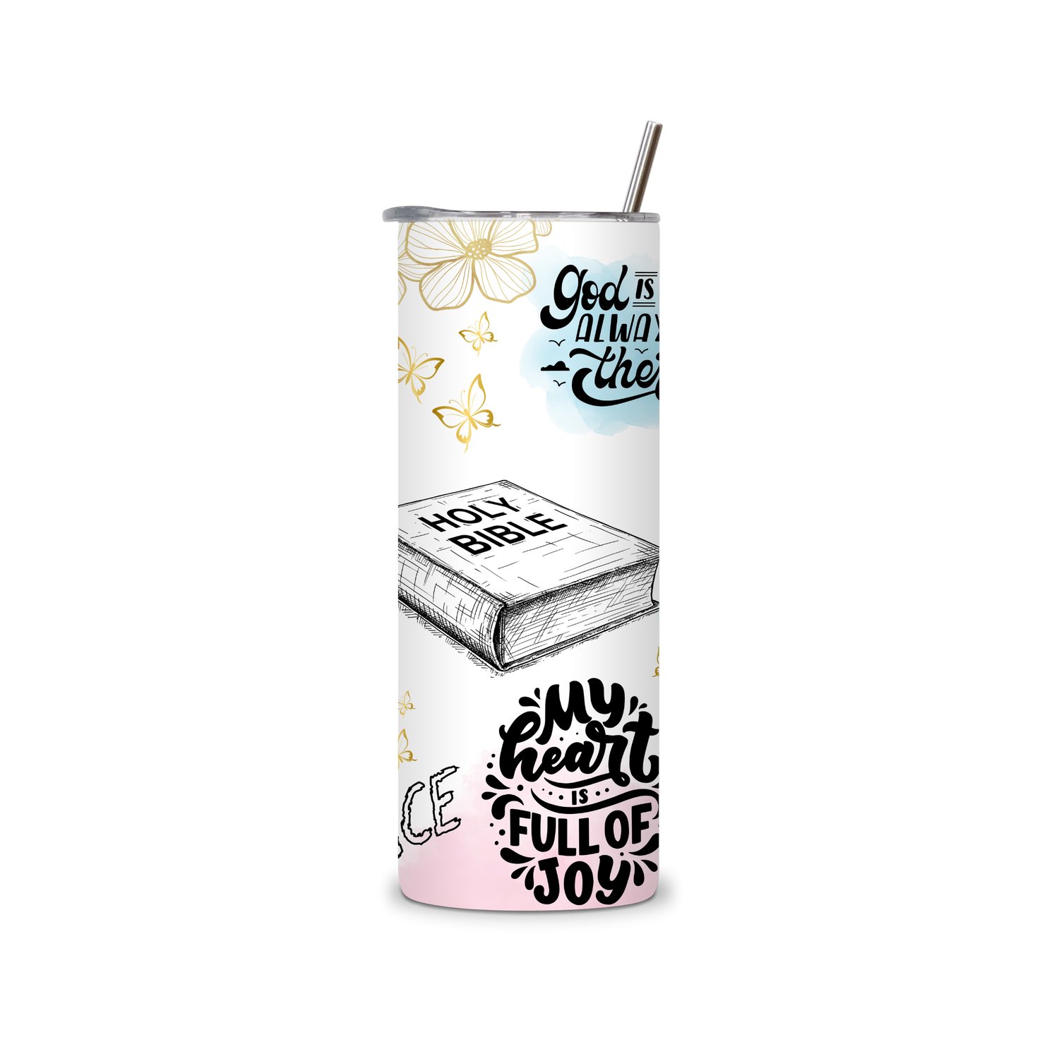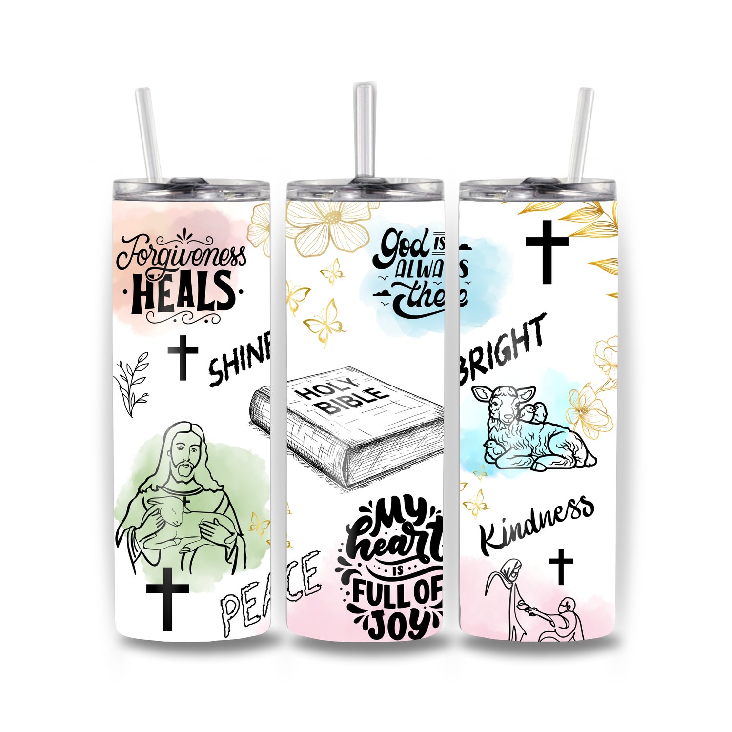 Carry your faith with you wherever you go with this beautifully designed 20oz tumbler. Filled with uplifting Christian messages like “Forgiveness Heals,” “God Is Always There,” “My Heart Is Full of Joy,” and more, this tumbler brings peace, hope, and encouragement to your daily routine.