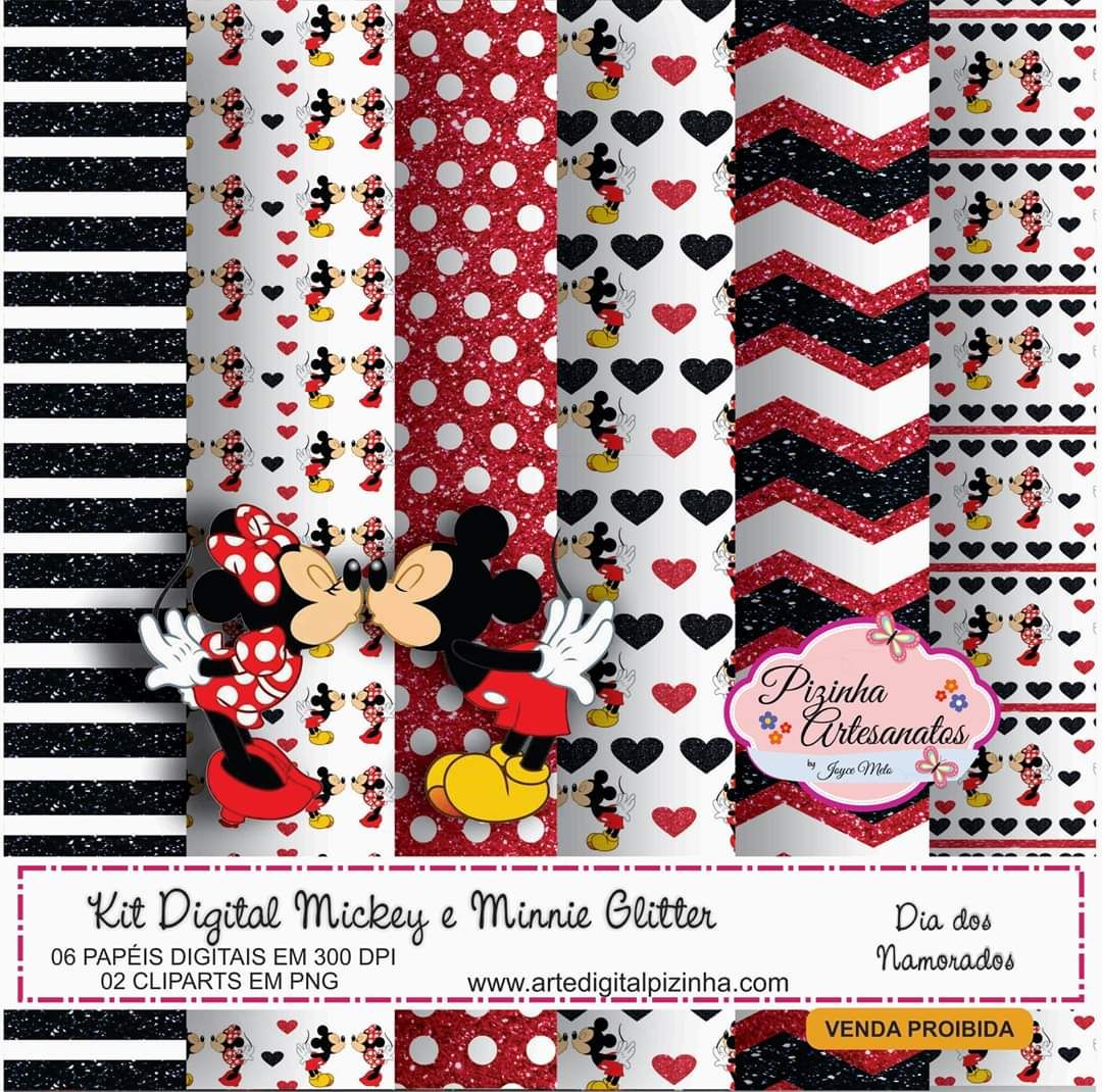 Arquivo Kit Mickey e Minnie Glitter Grátis Dia dos Namorados