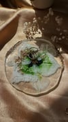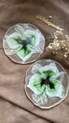 Unique handmade coasters featuring a delicate flower seemingly captured in crystal-clear resin.