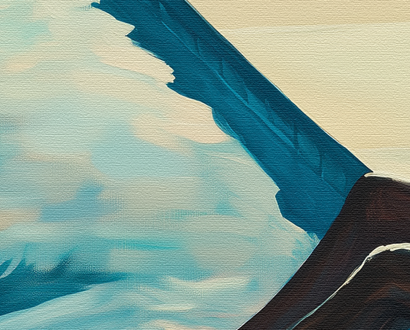 Experience the quiet unraveling of self through Displacement, a digital print by contemporary artist [Your Name]. A solitary figure sits poolside as the distorted reflection of a palm tree bends across the water—symbolizing the shifting nature of identity in times of change. Echoing the emotional resonance of Hopper and the calm tension of modern minimalism, this piece offers a visual meditation on the feeling of being uprooted.