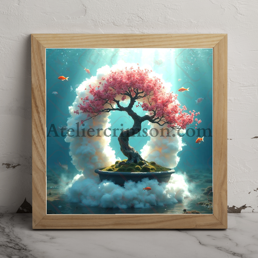 The letter Q bonzai aquamarin cloud a captivating digital painting with a serene underwater bonsai. Download Now this high quality AI-generated image, perfect for adding a touch of tranquility and creativity to any space.
