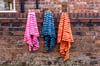 Yarn can be carried along the side of the work, or break it between stripes for a neater edge (if you don’t mind weaving a lot of ends in!).