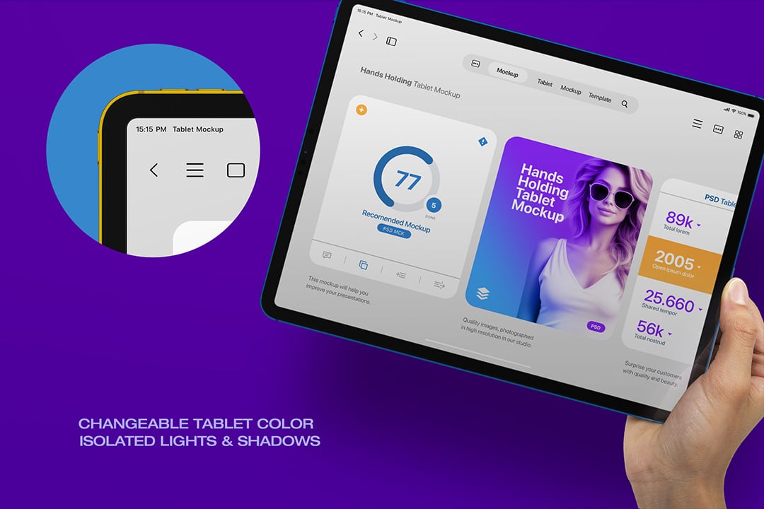A photorealistic tablet mockup featuring hands holding an iPad Pro, ideal for showcasing your UI/UX and app designs with clarity.