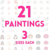 This bundle pack includes 21 different paintings, and each painting is available in 3 print sizes.