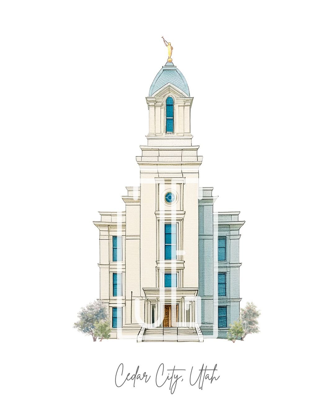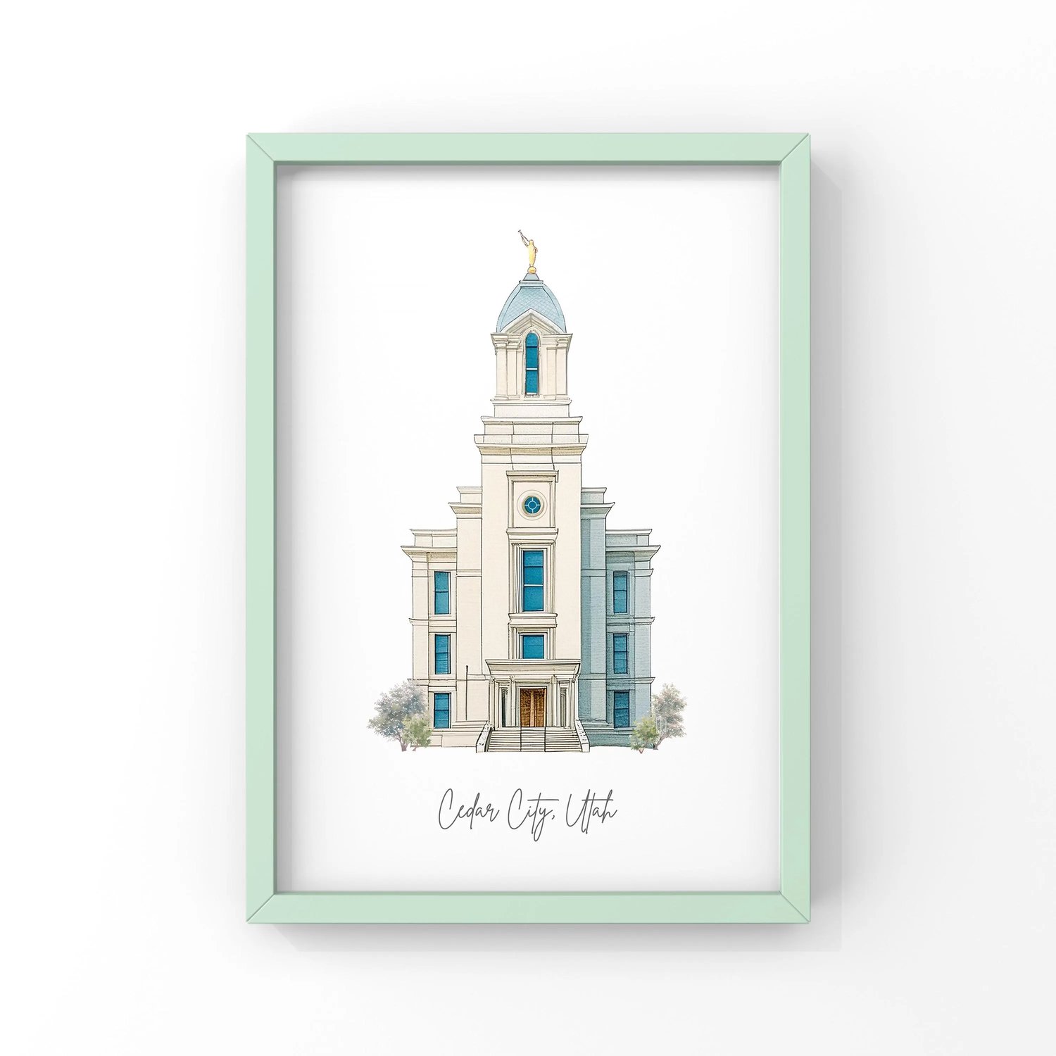 Cedar City, Utah LDS Temple Watercolor Print | Physical Print | Latter-Day Saint Temple | Mormon Temple Art | Temple Painting