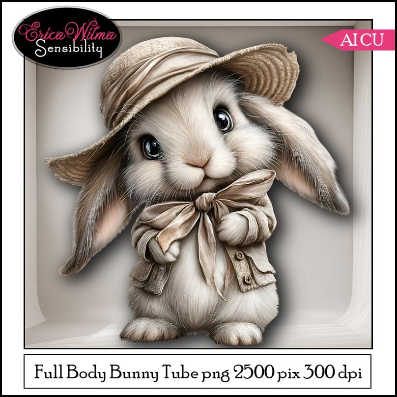 Meet this absolutely adorable full-body bunny, beautifully dressed in soft neutral tones and a charming hat. With its sweet expression and high-quality detail, these tubes are perfect for adding a gentle, cozy touch to all your creative projects.