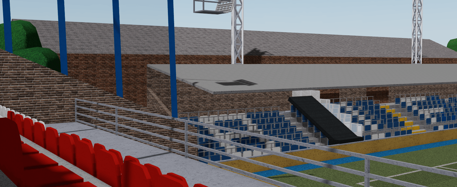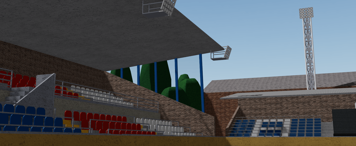 > This is a fictional football stadium that spans a massive 780 x 580 studs. The map includes plenty of seating areas for fans, along with a spacious entrance area. It also features dedicated match officials' zones, including separate home and away locker rooms for the teams.